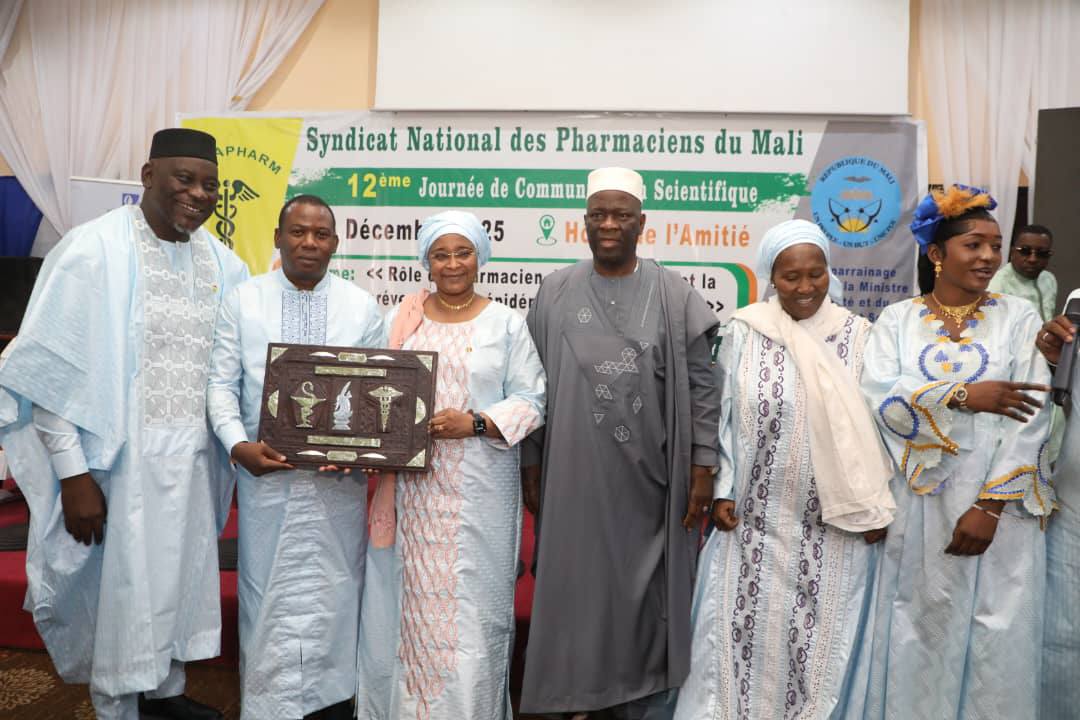 Dans son allocution, le Secrétaire général du SYNAPHARM a rappelé les nombreuses actions entreprises par le syndicat pour valoriser et renforcer le secteur pharmaceutique au Mali, notamment la participation active aux États Généraux de la Santé en 2024, l’avancement du chantier du siège social du SYNAPHARM dont la première pierre a été posée le 1er décembre 2023, des dons de médicaments au profit du ministère de la Santé à l’occasion du Mois de la solidarité 2025, le soutien à l’ONASR dans le cadre de la campagne « Novembre Bleu » contre le cancer de la prostate, l’organisation de marathons de sensibilisation à travers « Pharma-Sport » et de nombreuses actions de défense des intérêts des professionnels du secteur, et il a également salué la disponibilité constante de Madame le Ministre de la Santé et du Développement Social, le Médecin Colonel-major Assa Badiallo TOURÉ, pour son implication personnelle dans la résolution de plusieurs défis majeurs, notamment la gestion des difficultés liées à l’importation des médicaments, la fluidité des paiements AMO et la publication des nouveaux sites de pharmacies, toutefois le SYNAPHARM a formulé plusieurs doléances dont l’intensification de la lutte contre les faux médicaments et les produits phytosanitaires frauduleux, l’amélioration de la qualité des formations en pharmacie dans les établissements privés et la protection du monopole pharmaceutique sur les réactifs de laboratoire et le lait infantile.