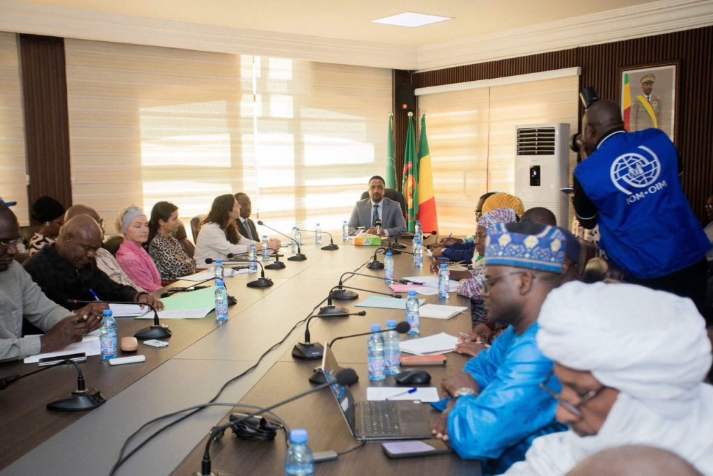 Le Ministre des Maliens Établis à l’Extérieur et de l’Intégration Africaine, Mossa AG ATTAHER, a présidé ce mardi 7 octobre 2025 une réunion de travail consacrée au Cadre National pour la Réintégration des Migrants (CNRM) et à la présentation de son Plan d’action 2025-2027. Cette rencontre a réuni l’ensemble des acteurs impliqués dans le processus de réintégration : les ministères concernés, l’Organisation Internationale pour les Migrations (OIM), les partenaires, ainsi que plusieurs associations et structures nationales spécialisées. Lors de son intervention, le Ministre a rappelé que la création du CNRM vise à coordonner et harmoniser les efforts en matière de réintégration, afin d’assurer une prise en charge complète des migrants de retour sur les plans économique, social et psychosocial. Le CNRM constitue un outil stratégique pour mettre en synergie les actions des différents acteurs, élaborer un plan d’action triennal clair et mesurable, et renforcer la visibilité et la transparence des interventions. Le travail continue a rassuré le ministre, des mécanismes concrets sont déjà en cours de mise en place pour renforcer la coordination, améliorer l’accompagnement des migrants et assurer le suivi des actions prévues dans le Plan d’action 2025-2027. MMEEIA