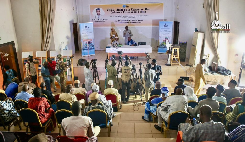 La Bibliothèque nationale de Bamako a accueilli, ce jeudi 23 octobre 2025, la conférence du parrain du mois d’octobre, l’ancien ministre de la Culture, M. Diadié Yacouba DAGNOKO. Cette conférence était couplée à la remise d’attestations aux familles donatrices de livres à la Bibliothèque nationale. La rencontre s’est tenue sous la présidence du Chef de cabinet du Ministère de l’Artisanat, de la Culture, de l’Industrie hôtelière et du Tourisme, M. Salia MALLE, représentant le Ministre Mamou DAFFÉ. Avec comme thème : « 2025, Année de la Culture : Tremplin pour une promotion véritable du livre et de la lecture au Mali ? » Cette conférence visait à célébrer le livre, la lecture et les acteurs pour leur promotion. La conférence a été précédée de la cérémonie de remise d’attestations à des familles donatrices de livres à la Bibliothèque avec un don cumulé de 4441 livres. Le directeur de la Bibliothèque nationale a insisté sur l’importance de ces gestes pour le partage et la conservation du savoir, car laisser des documents inexploités est considéré comme une perte pour le pays. La conférence du parrain du mois s’inscrit dans le cadre de l’Année de la Culture 2025, décrétée par Son Excellence le Général d’Armée Assimi GOÏTA, Président de la Transition, Chef de l’État. M. Dagnoko a d’ailleurs exprimé que son parrainage, axé sur le livre et la lecture, cherche surtout à garantir l’impact et la continuité des programmes culturels au-delà de cette année. L’ancien ministre a décrit cette entreprise comme une « longue marche » pour la promotion effective du patrimoine. MACIHT
