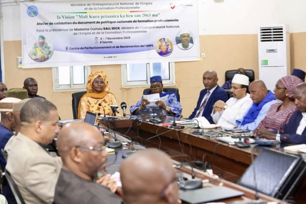 Le Centre de Perfectionnement et de Reconversion de l’ANPE a abrité la cérémonie d’ouverture de l’atelier de validation du document de Politique Nationale de Formation Professionnelle et de son Plan d’action 2026-2030, présidée par Madame Oumou SALL SECK, Ministre de l’Entrepreneuriat National, de l’Emploi et de la Formation Professionnelle. C’était en présence des membres du cabinet et du représentant de la Coopération Suisse au Mali. Dans son intervention, le Ministre a salué la vision éclairée et la volonté politique affirmée de Son Excellence le Général d’Armée Assimi GOÏTA, Président de la Transition, Chef de l’État, dont le leadership résolu place le développement du capital humain, l’entrepreneuriat et la souveraineté économique au cœur de l’action gouvernementale. Elle a également rendu hommage à la bonne conduite des affaires publiques assurée par le Premier ministre, Chef du Gouvernement, le Général de Division Abdoulaye MAÏGA, dont la rigueur, le sens de l’État et la vision stratégique renforcent la cohérence et l’efficacité de l’action gouvernementale. C’est dans ce cadre que son département s’inscrit pleinement, en alignant ses initiatives sur la vision du Mali Kura, celle d’un Mali fort, productif et solidaire. Le ministre Oumou SALL SECK a indiqué que cet atelier marque une étape déterminante dans la mise en œuvre de la vision nationale de développement du capital humain, pilier essentiel du progrès économique et social du pays. Elle a souligné que, depuis plusieurs années, le Mali s’est engagé dans une dynamique de transformation économique et sociale, fondée sur la valorisation des compétences, la promotion de l’emploi décent et l’autonomisation des jeunes et des femmes. Pour mémoire, c’est en 2009 que le Mali a adopté sa première Politique Nationale de Formation Professionnelle. Après plusieurs années de mise en œuvre, une évaluation approfondie a permis d’établir un diagnostic précis de son environnement d’application. Les résultats de cette évaluation ont révélé une cohérence globale entre les objectifs de la politique, les besoins réels du pays et les orientations des différentes politiques sectorielles. De nombreux acquis ont ainsi été enregistrés, notamment la construction et l’aménagement de centres de formation professionnelle ; le renforcement des capacités techniques des acteurs ; la diversification des filières et l’élaboration de documents techniques et stratégiques pertinents. Cependant, exergue-t-elle, d’importants défis demeurent, parmi lesquels le développement des ressources humaines ; l’accroissement des ressources matérielles et financières ; la création de passerelles entre enseignement général et formation professionnelle ; l’implication accrue des collectivités territoriales dans le financement ; l’adéquation entre la formation et les besoins du marché du travail et le renforcement de l’équipement des centres. Ces défis, a-t-elle insisté, exigent l’engagement et la mobilisation de tous les acteurs du secteur, publics comme privés, ainsi qu’une coordination efficace des efforts et des ressources disponibles. Le document de Politique Nationale de Formation Professionnelle 2026-2030 s’inscrit dans la vision d’un système de formation professionnelle inclusif, performant et innovant, au service de la productivité et de la compétitivité des secteurs productifs. Il vise également à faire de la formation professionnelle un levier d’équité sociale, d’inclusion et de développement durable. Sur le plan politico-institutionnel, cette politique s’aligne parfaitement sur les documents de référence du Mali, notamment la Vision « ƝƐTAASIRA KA BƐN SAN 2063 MA » et la Stratégie Nationale de l’Émergence et du Développement Durable (SNEDD) 2024-2033. Le Ministre a adressé ses remerciements à l’ensemble des partenaires techniques et financiers accompagnant son département dans les efforts communs de développement, en particulier le Bureau de la Coopération Suisse à Bamako et HELVETAS Mali, pour leur appui constant et leur engagement soutenu aux côtés du Ministère. MENEFP