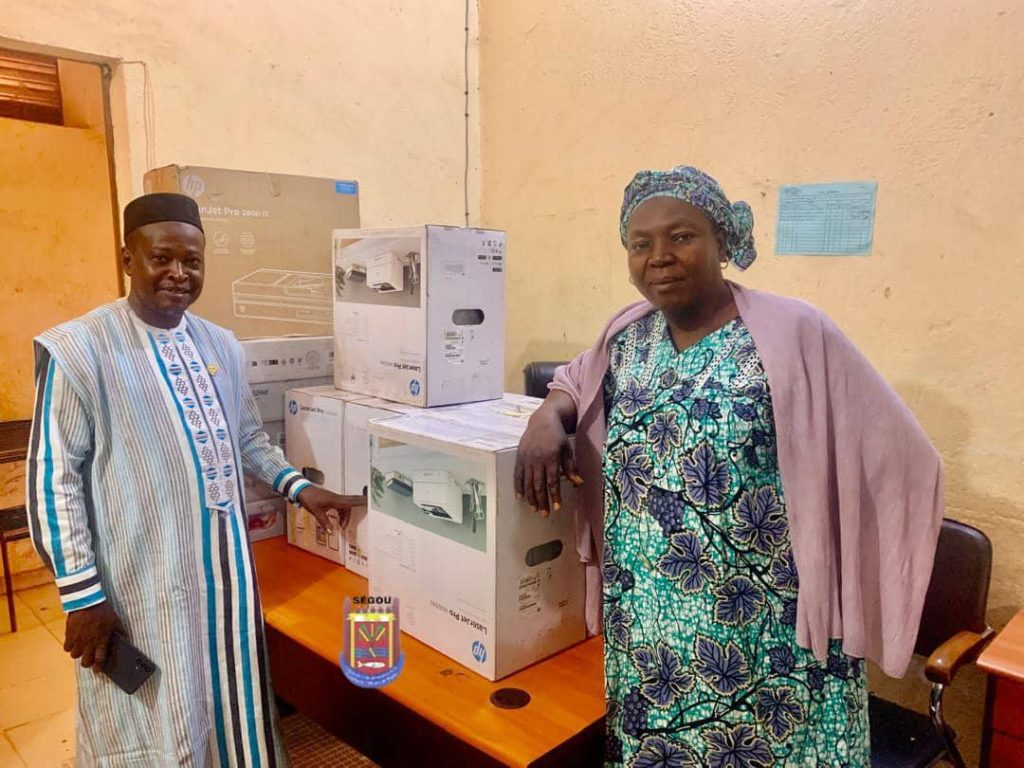 Dans le cadre de l’amélioration des services de l’état civil, l’Unité de Coordination du Projet de Déploiement des Ressources de l’État pour l’Amélioration des Services et la Riposte Locale à la COVID-19 a octroyé Vendredi, 7 Novembre 2025 Un important lot de matériels informatiques a été remis à la Mairie de la Commune Urbaine de Ségou, comprenant notamment cinq ordinateurs de bureau équipés d’écrans 24 pouces, cinq onduleurs, cinq imprimantes, une photocopieuse noire et blanche, ainsi qu’un scanner. L’objectif de ce don est de favoriser l’informatisation complète du service de l’état civil, afin de moderniser la gestion des données administratives, d’améliorer la qualité et la rapidité du service rendu aux usagers, et de renforcer la fiabilité des registres d’état civil. En images, le Maire de la Commune Urbaine de Ségou, M. Nouhoun Diarra, accompagné de la Comptable-Matières, Mme Diallo Assitan Bouaré, procédant à la réception du matériel. Ce geste s’inscrit dans la dynamique de digitalisation et de modernisation des services publics prônée par les plus hautes autorités du pays. Commune Urbaine de Ségou