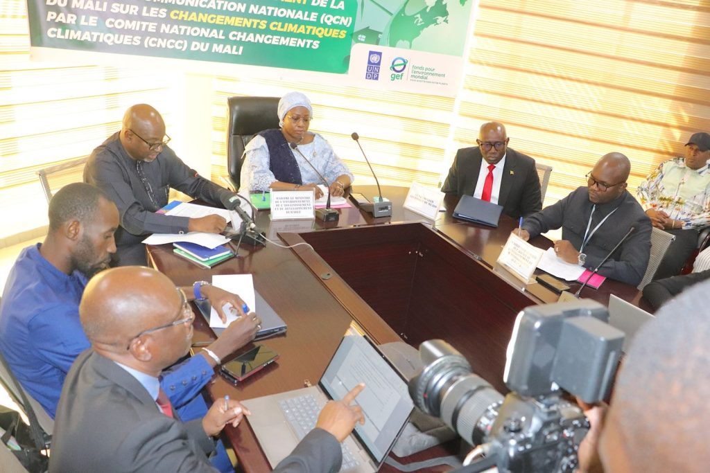 Le ministre de l’Environnement, de l’Assainissement et du Développement durable, DOUMBIA Mariam TANGARA a présidé, ce jeudi 27 novembre 2025, l’atelier de validation de la Quatrième Communication Nationale du Mali. C’était dans la salle de conférence de l’Agence de l’Environnement et du Développement Durable, en présence du représentant du Représentant Résident du PNUD au Mali et des membres des structures et organisations membres de la Coalition nationale Changements Climatiques. Dans son allocution, M. Oumar TAMBOURA du PNUD a réaffirmé la détermination du Programme à accompagner les efforts du Gouvernement dans son combat pour la protection de l’environnement et l’atténuation des effets néfastes des changements climatiques. Partenaire technique et financier, le PNUD joue un rôle déterminant dans la mise en œuvre de la Quatrième Communication. Dans son discours d’ouverture, le ministre chargé de l’Environnement, DOUMBIA Mariam TANGARA a salué l’engagement et la volonté des Plus Hautes Autorités à travers son Excellence le Général d’Armée Assimi GOITA, Président de la Transition, Chef de l’Etat, qui œuvre au quotidien, pour faire de la protection de l’environnement et de la lutte contre les effets néfastes des changements climatiques, une priorité nationale. Elle a également mis l’accent sur les acquis obtenus grâce à la mise en œuvre du projet : la réalisation d’une étude sur les circonstances nationales et les dispositions institutionnelles pertinentes pour la préparation des communications nationales ; l’organisation d’un atelier de capitalisation des actions de sensibilisation, d’éducation et de recherche sur les changements climatiques ; la réalisation de campagnes de sensibilisation du public sur les changements climatiques (Bamako, Kangaba, Ouéléssebougou et Kéniéba). D’autres actions visent la restitution des résultats de la COP 27 sur les changements climatiques à l’endroit des acteurs de la Société civile à Bamako ; la formation des équipes d’inventaire des gaz à effet de serre (GES) sur l’inventaire des GES y compris le logiciel de calcul des GES. En outre, la réalisation de l’inventaire des GES mis à jour jusqu’à l’année 2019 dans les secteurs clés, à savoir : l’agriculture (y compris l’élevage) ; l’utilisation des terres, le changement d’affectation des terres et la foresterie (UTCATF) ; l’énergie ; les procédés industriels ; la gestion des déchets ; et l’utilisation de solvants, avec les lignes directrices 2006 du GIEC ; la réalisation d’études visant à établir les facteurs locaux d’émission de GES dans les secteurs clés (Agriculture, sylviculture et énergie) ; le renforcement du système national d’information sur l’environnement par la collecte et l’intégration des données sur les émissions de GES; la réalisation de l’étude sur l’analyse genre et le plan d’engagement des parties prenantes. MEADD