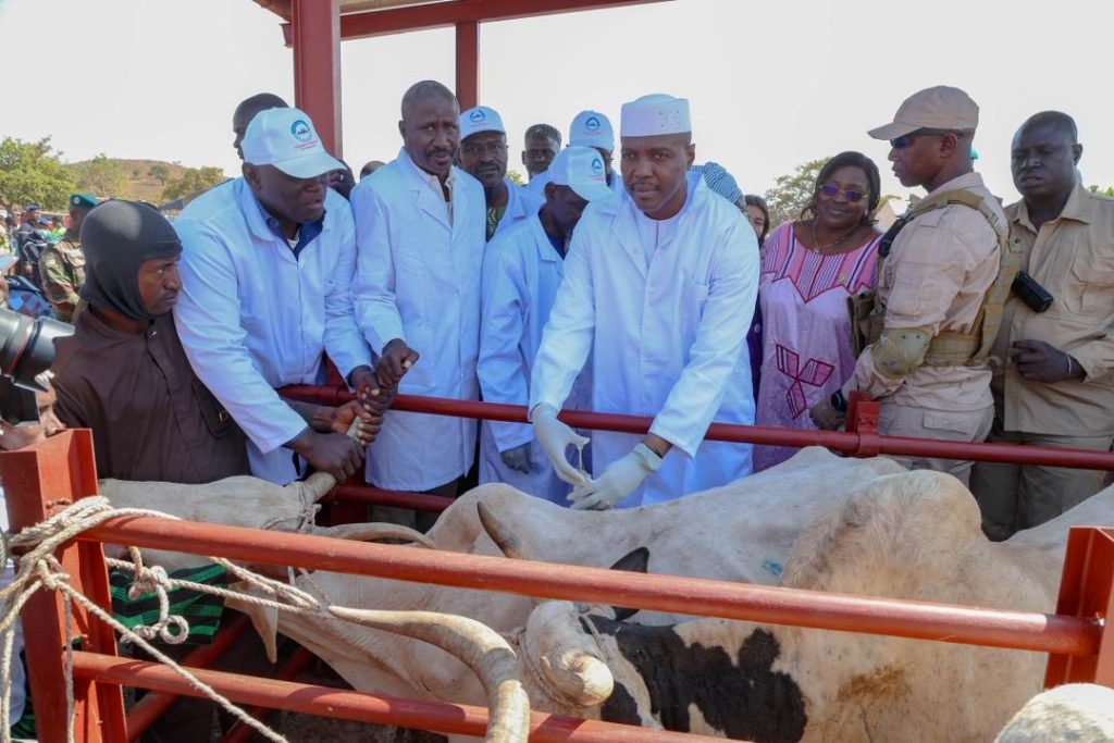 C’est parti pour la campagne nationale de vaccination 2025-2026 du bétail malien. La 1ère dose de vaccin a été administrée aux animaux du Parc à bétail de Kati Draal, dans la Commune rurale de Kambila par le Premier ministre, Chef du Gouvernement, le Général de Division Abdoulaye MAÏGA, au nom de Son Excellence le Général d’Armée Assimi GOÏTA, Président de la TRANSITION, Chef de l’État. Cette cérémonie a eu lieu, ce vendredi 26 décembre 2025 à Kati Draal, dans la Commune de Kambila, en présence du Ministre de l’Élevage et de la Pêche, Youba BA, ainsi que plusieurs membres du Gouvernement et les autorités administratives de la localité. On a noté, aussi, la présence du Président de l’APCAM et des responsables des faitières du secteur de l’élevage. L’événement a été marqué par plusieurs interventions, qui ont souligné l’engagement du Gouvernement en faveur de la santé animale, de la sécurité sanitaire des populations et l’importance accordée à la vaccination des bétails. Le Président de l’APCAM, Sanoussi Bouya SYLLA a remercié les autorités de la Transition pour les efforts engagés dans le secteur de l’élevage. Il a souligné la criminalisation du vol du bétail dans notre pays, de même que le renforcement du Centre national d’insémination, qui constitue un facteur indéniable d’amélioration génétique du cheptel. En effet, la campagne annuelle de vaccination des animaux vise, notamment, à lutter contre les principales maladies animales, à renforcer la productivité du secteur de l’élevage, à contribuer à la sécurité alimentaire et au développement économique du pays. Le ministre de l’Elevage et de la Pêche a relevé la place de l’élevage dans l’économie nationale. Il a décliné la vision du Mali à augmenter la place de l’élevage en luttant contre les maladies. Il a indiqué que cette campagne vise à prévenir les principales maladies affectant les bovins, ovins, caprins, camelins et volailles, tout en protégeant le cheptel national et en améliorant les revenus des éleveurs. Le Ministre Youba BA a, également, ajouté que l’élevage représente environ 12 % du produit intérieur brut malien et fait vivre, directement ou indirectement, près de 30 % de la population. Le cheptel national est estimé à plus de 100 millions de têtes toutes espèces confondues, selon le ministère de l’Élevage. Les maladies animales entraînent d’importantes pertes économiques, pouvant atteindre 20 à 30 % de la production annuelle dans certaines zones sahéliennes. Elles impactent, également la disponibilité des produits d’origine animale et les revenus des ménages ruraux. La vaccination est aussi un outil de prévention des maladies zoonotiques, sachant que plus de 60 % des maladies infectieuses émergentes dans le monde proviennent des animaux. Ces risques sont accentués dans les zones où le bétail est très mobile. Il a remercié les partenaires techniques et financiers de l’opération, parmi lesquels figurent la FAO, l’Organisation mondiale de la santé animale et le Comité international de la Croix-Rouge, tous engagés dans les programmes de santé animale et de résilience pastorale au Mali. Dans l’interview accordée aux journalistes, le Premier ministre, Chef du Gouvernement, le Général de Division Abdoulaye MAÏGA a souligné l’importance stratégique de la vaccination animale dans la prévention des maladies zoonotiques, la protection du cheptel national et l’amélioration des conditions de vie des éleveurs. Il a appelé à une forte mobilisation des éleveurs et des acteurs du monde rural, afin d’assurer le succès de cette campagne sur toute l’étendue du territoire national. Selon le ministre Youba Bah, un Système national d’identification et de traçabilité du bétail, dénommé NINA-B, a été élaboré et adopté. « Il constituera, dans un avenir proche, un instrument majeur de suivi des mouvements des animaux et de traçabilité de leurs produits », a rassuré le chef du département de l’Élevage. Pour le Général de Division Abdoulaye MAÏGA la vaccination permet de réduire l’incidence des maladies animales. Il a ajouté que l’Elevage occupe 12% du PIB, produit intérieur brut de l’économie nationale. Le chef du gouvernement a remercié tous les acteurs et partenaires comme la FAO, l’organisation mondiale de la santé animale, le CICR, entre autres.