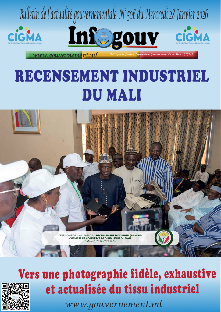 Le Ministre de l’Industrie et du Commerce Monsieur Moussa Alassane DIALLO a procédé ce lundi 26 Janvier 2026 au lancement officiel du recensement industriel national, une opération initiée par le département à travers la Direction Nationale de l’Industrie (DNI) et la Chambre de Commerce et d’Industrie du Mali. La cérémonie a réuni les membres du cabinet du Ministre, les représentants du secteur privé et des organisations patronales et consulaires ainsi que des autorités locales. L’objectif du recensement est de doter le Mali d’une photographie fidèle, exhaustive et actualisée de son tissu industriel, en parfaite cohérence avec la Vision « Mali Kura Nietassira ka Ben 2063 ma » Les chiffres disponibles, qu’il faille actualiser donnent déjà la mesure de l’enjeu à savoir près de 1 067 unités industrielles, plus d’une centaine d’huileries, illustrant le potentiel de transformation locale et 7 % du Produit Intérieur Commercial (PIC) généré par l’industrie manufacturière. Lors de la cérémonie, les représentants de la CCIM, de l’Organisation Patronale des Industriels (OPI) ont unanimement salué cette initiative structurante, perçue comme un tournant dans la gouvernance du secteur industriel. Le Ministre Moussa Alassane DIALLO a rappelé que ce recensement s’inscrit pleinement dans la Vision 2063, portée par le Président de la Transition, Chef de l’État. In fine, il permettra de disposer de statistiques fiables et claires, afin de guider l’action du Gouvernement et du secteur privé, de conduire les réformes, de renforcer les investissements à long terme et d’assurer une meilleure répartition territoriale des activités industrielles. Conscient de l’importance stratégique de l’opération, le Ministre, en remettant officiellement les kits des enquêteurs les a exhortés à s’engager pour un recensement de qualité. Les superviseurs et agents recenseurs devront faire preuve d’une bonne qualification, d’une maîtrise rigoureuse des outils de collecte et d’un professionnalisme irréprochable sur le terrain. Par ailleurs, un accent particulier sera mis sur la sensibilisation, afin d’assurer l’adhésion des industriels et la fiabilité des données collectées. MIC