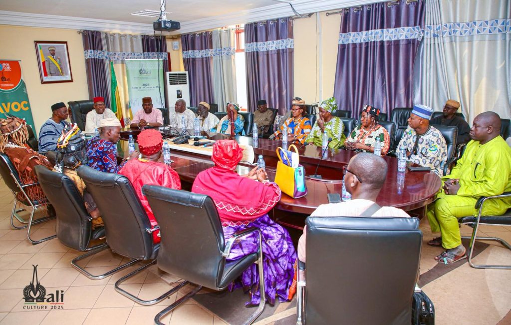 Une forte délégation des pratiquants des cultes mystiques endogènes des peuples de l’AES conduite par M. Konoba TRAORE, Trésor humain vivant du Burkina Faso a été reçue, ce mardi 27 janvier 2026, dans la salle de réunion du département par le Ministre de l’Artisanat, de la Culture, de l’Industrie hôtelière et du Tourisme, M. Mamou DAFFÉ. Cette rencontre avec le Ministre s’est tenue en marge de la 3e édition de la Rencontre solennelle des pratiquants des cultes mystiques endogènes des peuples de l’AES qui se tient du 25 au 27 janvier 2026 à Bamako. L’objectif de cette visite pour la délégation était de venir exprimer ses remerciements au Ministre pour son accompagnement pour la réussite de cette Rencontre qui rassemble des pratiquants des cultes mystiques endogènes du Burkina Faso, du Mali et du Niger. La délégation a aussi réitéré son engagement à accompagner les autorités des trois pays de l’AES dans la lutte contre les forces du mal qui sévissent dans nos trois pays. Organisée par l’Association Faso Kanu Blonba (AFKB) du Mali en collaboration avec les associations sœurs du Burkina Faso et du Niger, cette Rencontre contribue à promouvoir la cohésion sociale entre les peuples et à la sauvegarde du patrimoine culturel des États de la Confédération du Sahel. Le Ministre DAFFE a félicité ses hôtes du jour pour leur engagement dans la préservation des pratiques mystiques endogènes et a salué leur soutien aux autorités des trois pays de l’AES. MACIHT