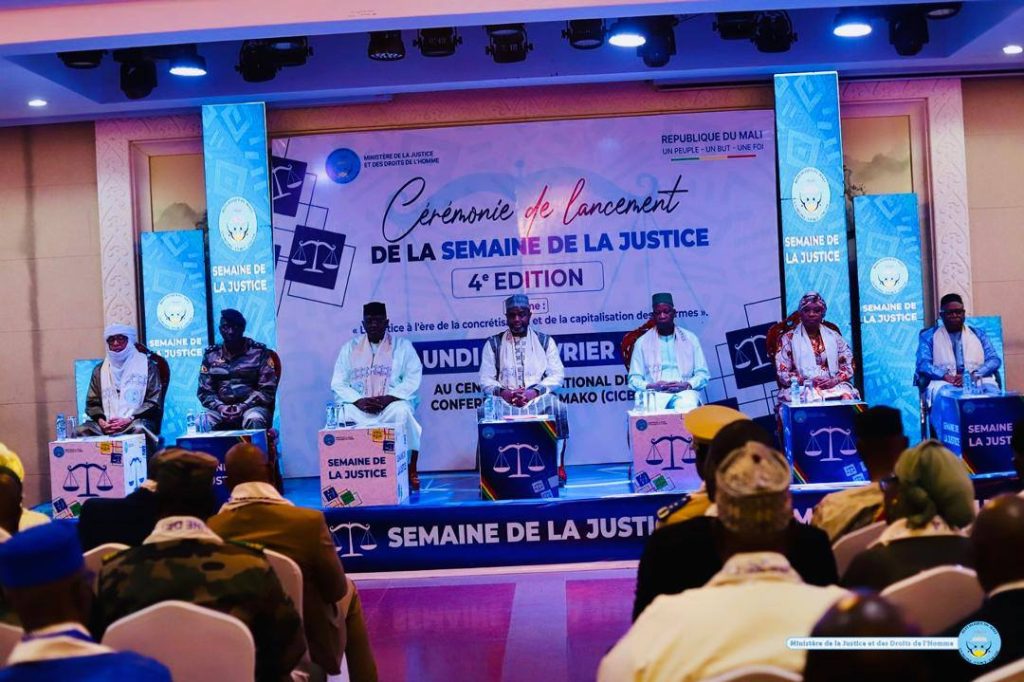 Le Ministre de la Justice et des Droits de l’Homme, Garde des Sceaux, M. Mamoudou KASSOGUÉ, a procédé, lundi 09 février 2026, au Centre International de Conférence de Bamako (CICB), au lancement solennel de la quatrième édition de la Semaine de la Justice. Cet événement majeur a rassemblé plusieurs membres du gouvernement, des partenaires techniques et financiers, ainsi que des acteurs judiciaires et de nombreuses personnalités, témoignant ainsi de l’importance accordée à la justice. Cette édition, qui se déroule du 9 au 14 février, est placée sous le thème « La justice à l’ère de la concrétisation et de la capitalisation des réformes ». Une thématique pertinente, car, comme l’a souligné le président de la commission d’organisation, Dr Aboubacar Sidiki DIARRAH, « il n’y a pas de croissance sans réformes et pas de réformes sans croissance ». Institutionnalisée depuis 2022 par le gouvernement de la transition sur proposition du Ministre de la Justice, la semaine de la Justice a pour objectif de rapprocher la justice des justiciables et de promouvoir un service public de la justice plus efficace, afin de restaurer la confiance du public en cette institution. Pour cette semaine plusieurs activités sont inscrites au programme. Dans son discours d’ouverture, Le Ministre a rappelé que « la semaine de la justice est une initiative qui a démontré que la justice n’est plus, désormais, la « grande muette » », soulignant l’importance de la transparence et de l’accessibilité. Il a également affirmé que « les professionnels de la justice sont mal fondés à donner des leçons ou à prononcer des décisions de condamnation à l’encontre des citoyens si eux-mêmes sont les premiers à transgresser allègrement la loi ». Ce lancement marque une étape significative vers une justice plus accessible et plus digne de confiance pour tous les citoyens. MJDH