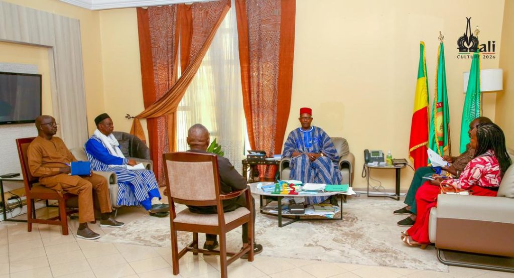 Une délégation de la Fédération des Artistes du Mali (FEDAMA), conduite par son Président Adama TRAORÉ, a été reçue en audience, ce mardi 17 février 2026, par le Ministre de l’Artisanat, de la Culture, de l’Industrie hôtelière et du Tourisme, Mamou DAFFÉ. Cette visite intervient dans le prolongement de l’Année de la Culture au Mali et la décision de Son Excellence le Général d’Armée Assimi GOÏTA, Président de la Transition, Chef de l’État de décréter la période 2026-2027, Année de l’Éducation et de la Culture. La délégation était venue soumettre au ministre son projet de plan d’actions, élaboré pour renforcer la place des artistes dans le développement culturel du pays. Ce document met en avant des initiatives destinées à consolider les acquis et à accompagner les politiques nationales, en particulier dans le cadre de la promotion et de la valorisation de la création artistique. Le Ministre Mamou DAFFÉ a félicité la FEDAMA pour ce plan et a informé la délégation que le département à travers le programme Maliden Kura et le projet Culture Mali 2026 mettra l’accent cette année sur les réformes, la structuration et le développement du secteur culturel. Il a réaffirmé son engagement à soutenir la Fédération, en insistant sur l’importance de consolider la dynamique de partenariat public-privé enclenchée en 2025, Année de la Culture au Mali. MACIHT