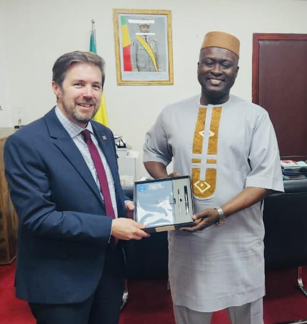 Le Ministre de la Jeunesse et des Spots, chargé de l’Instruction Civique et de la Construction citoyenne, Abdoul Kassim FOMBA a reçu en audience, ce mardi 17 février 2026, SEM. Angus McKee, Ambassadeur du Royaume-Uni au Mali. Cette rencontre s’inscrivait dans le cadre d’une visite de courtoisie que le diplomate britannique effectue auprès des départements ministériels, à la suite de la présentation de ses lettres de créance à Son Excellence le Général d’Armée Assimi GOÏTA, Président de la Transition, Chef de l’Etat. Les échanges ont permis aux deux personnalités de passer en revue l’état des relations de coopération entre le Mali et le Royaume-Uni, notamment dans les domaines du sport et l’accompagnement des jeunes. Les relations sportives entre les deux pays, remontent aux années 1965. Les discussions ont également porté sur les feuilles de route respectives des deux personnalités. À cet égard, des axes de coopération ont été identifiés, en particulier dans les domaines de la construction citoyenne et du développement du sport. L’accompagnement de l’organisation faîtière des jeunes, le Conseil National de la Jeunesse (CNJ), a été évoqué parmi les pistes de partenariat. L’audience s’est déroulée dans une atmosphère de cordialité. Elle s’est achevée par un échange de présents. MJSCICCC