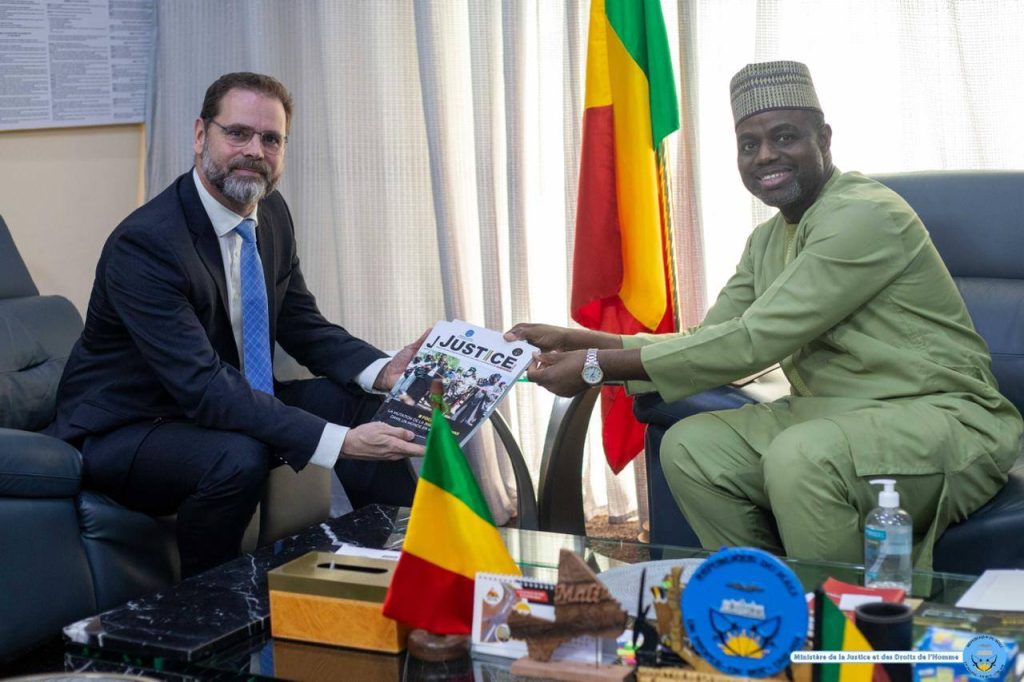 Le Ministre de la Justice et des Droits de l’Homme, Garde des Sceaux, Mamoudou KASSOGUE, a accordé une audience à l’Ambassadeur du Royaume des Pays-Bas au Mali, Son Excellence Erik De FEIJTER, dans le cadre d’une visite de courtoisie à forte portée diplomatique. Cette rencontre, au-delà de son caractère protocolaire, s’inscrit dans une dynamique soutenue de consolidation des relations de coopération entre le Mali et les Pays-Bas. Elle a offert un cadre privilégié d’échanges approfondis sur les perspectives de renforcement d’un partenariat reconnu pour sa constance et son impact dans le secteur de la justice. Les discussions ont porté sur les priorités communes, notamment la promotion de l’État de droit, la modernisation du système judiciaire et l’amélioration de l’accès des citoyens à une justice équitable, crédible et efficace. Les deux parties ont salué les progrès réalisés, tout en convenant de la nécessité de poursuivre et d’intensifier les efforts dans les domaines des réformes institutionnelles, du renforcement des capacités et de la gouvernance judiciaire. À cette occasion, l’Ambassadeur des Pays-Bas a exprimé son appréciation des avancées enregistrées sous l’impulsion du Ministre KASSOGUE, réaffirmant l’engagement de son pays à accompagner le Mali à travers des initiatives concrètes et à fort impact. En retour, le Ministre a salué la qualité exemplaire de la coopération bilatérale, tout en appelant à une intensification des actions conjointes, orientées vers des résultats tangibles et durables au bénéfice des populations. À travers cette audience, le Mali et les Pays-Bas réaffirment leur volonté commune de hisser leur coopération à un niveau encore plus stratégique, au service d’une justice performante, socle essentiel de la stabilité institutionnelle, de la paix sociale et du développement durable. MJDH