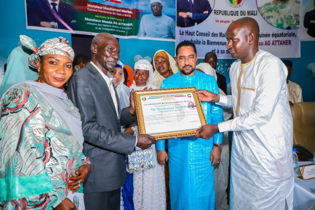Le ministre des Maliens établis à l’Extérieur et de l’Intégration africaine, M. Mossa AG ATTAHER, a rencontré, ce lundi 30 mars 2026, la communauté malienne établie dans la ville de Bata, en Guinée équatoriale. Dès son arrivée, le Ministre a été accueilli avec une ferveur remarquable par ses compatriotes. Cette mobilisation significative s’est poursuivie au Centre culturel de Bata, cadre choisi pour des échanges directs et ouverts, en présence de ressortissants des pays membres de la Confédération des États du Sahel (AES), illustrant l’esprit de solidarité qui unit les peuples de cet espace. Au cours de cette rencontre d’écoute, les représentants de la communauté ont exprimé leur reconnaissance à l’endroit des plus hautes autorités du Mali pour l’attention constante accordée à la diaspora. Ils ont, en outre, salué l’engagement du Ministre depuis sa prise de fonction, mettant en exergue les progrès réalisés dans la gestion des préoccupations des Maliens établis à l’extérieur. Les échanges ont permis d’aborder, sans détour, plusieurs préoccupations majeures des compatriotes, notamment celles liées à l’accès aux documents administratifs et de voyage, ainsi qu’aux conditions d’organisation des retours volontaires dans la dignité et la sécurité. Le Ministre a assuré que ces préoccupations font l’objet d’un suivi attentif, dans une dynamique visant à améliorer continuellement les services apportés à la diaspora. Profitant de cette tribune, M. Mossa AG ATTAHER a également partagé des informations relatives à l’évolution de la situation nationale, tout en appelant à la vigilance face aux campagnes de désinformation visant les pays de la Confédération des États du Sahel. Il a réaffirmé la détermination des autorités maliennes à œuvrer pour la stabilité, la sécurité et la défense des intérêts supérieurs de la Nation. Par ailleurs, le Ministre a invité ses compatriotes à renforcer la cohésion au sein de leur communauté, à promouvoir l’unité et à faire preuve d’exemplarité dans le respect des lois et règlements du pays d’accueil. Il a rappelé, à cet effet, que la diaspora constitue un levier essentiel du rayonnement du Mali et un acteur clé de son développement. À l’issue de la rencontre, le Ministre s’est réjoui des différentes marques de considération exprimées par la communauté, notamment à travers la remise d’une attestation de reconnaissance ainsi que de présents symboliques, témoignages de la confiance et de l’estime portées à son action. Cette étape à Bata s’inscrit dans la volonté constante des autorités maliennes de renforcer la proximité avec leurs ressortissants établis à l’extérieur, dans un esprit d’écoute, de dialogue et de responsabilité partagée, au service du développement national. MMEIA