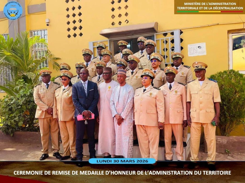 L’enceinte du Ministère de l’Administration territoriale et de la Décentralisation (MATD) a abrité la cérémonie de remise des médailles d’honneur de l’Administration du Territoire, le lundi 30 mars 2026. Ces distinctions ont été décernées à des personnalités, cadres et agents qui se sont illustrés par leur exemplarité, leur engagement et leur abnégation du service public. A travers cette initiative, les plus hautes autorités de notre pays réaffirment leur volonté de reconnaître et de récompenser les agents les plus méritants, tout en incitant l’ensemble des serviteurs de l’État à redoubler d’efforts afin de mieux répondre aux attentes de nos concitoyens. Placée sous la présidence du Général de Brigade Issa Ousmane COULIBALY, Ministre de l’Administration territoriale et de la Décentralisation, en présence du Grand Chancelier des Ordres Nationaux, cette cérémonie empreinte de grande solennité a constitué un moment fort d’exaltation des valeurs de mérite, d’intégrité et de dévouement au service de la Nation Au total, 40 médailles ont été décernées, notamment : – à titre posthume, à Feu Modibo KEITA, ancien Président de la République et ancien Premier Ministre du Ministre de l’Administration territoriale et de la Décentralisation ; – au Chef d’Etat-major général des Armées ; – à des Chefs de service du MATD ; – ainsi qu’à 19 Gouverneurs. Une reconnaissance méritée pour ces serviteurs de l’État dont l’engagement inspire toute l’Administration territoriale. MATD
