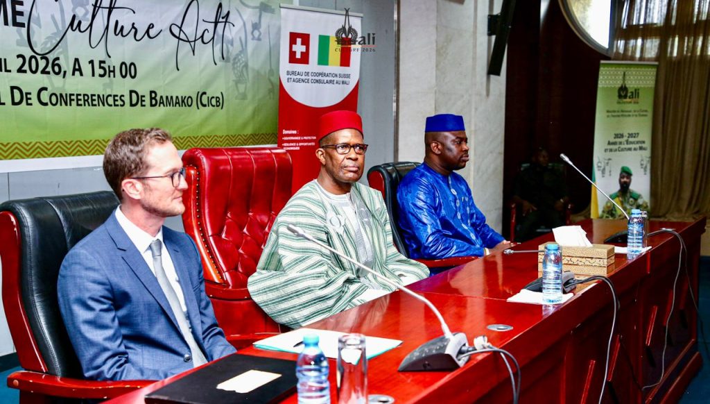 La salle Balla Moussa KEÏTA du CICB a accueilli, ce mercredi 15 avril 2026, la cérémonie officielle de lancement du programme CultureAct 1. La rencontre était présidée par le ministre de l’Artisanat, de la Culture, de l’Industrie hôtelière et du Tourisme, M. Mamou DAFFÉ, en présence du chef de bureau de la Coopération suisse au Mali, M. Claude WANDELER, et de plusieurs personnalités des arts et de la culture au Mali. Mis en œuvre dans le cadre de l’Accord de projet signé le 9 juillet 2025 entre la République du Mali et la Confédération suisse, CulturAct 1 incarne un partenariat stratégique au service du secteur culturel malien. Il traduit une ambition partagée, de faire de la culture un pilier du développement national, de la cohésion sociale et de la souveraineté culturelle. Le programme intervient dans quatre zones prioritaires, notamment Sikasso, Mopti, Tombouctou et le District de Bamako. Ces territoires bénéficient de cadres de concertation régionaux réunissant collectivités, services techniques et acteurs culturels. L’objectif est de renforcer la gouvernance locale, professionnaliser les acteurs et promouvoir des initiatives culturelles inclusives, contribuant ainsi à un développement durable et territorial. En cohérence avec la dynamique de structuration et de professionnalisation du secteur culturel malien, enclenché depuis l’Année de la Culture (2025), à travers le Programme de Développement de la Culture – Maliden Kura 2025-2027, CulturAct.1 s’aligne avec la vision des plus hautes autorités du Mali de contribuer de manière significative à la revitalisation culturelle des territoires. Le chef de Bureau de la Coopération Suisse au Mali, M. Claude WANDELER a rappelé que la culture est un levier essentiel de développement humain, social et économique. Il a souligné l’importance de la diversité culturelle comme vecteur de dialogue et d’innovation, affirmant l’engagement de la Suisse à accompagner le Mali dans la mise en place d’un écosystème culturel durable et inclusif, au service de la cohésion sociale et de la souveraineté culturelle. Le ministre Mamou DAFFÉ a salué la richesse des talents maliens et la créativité des territoires. Il a affirmé que CultureAct 1 contribuera à professionnaliser le secteur, soutenir les initiatives locales. Il a également insisté sur la nécessité de valoriser les jeunes et les femmes comme acteurs majeurs de la transformation culturelle. MACIHT