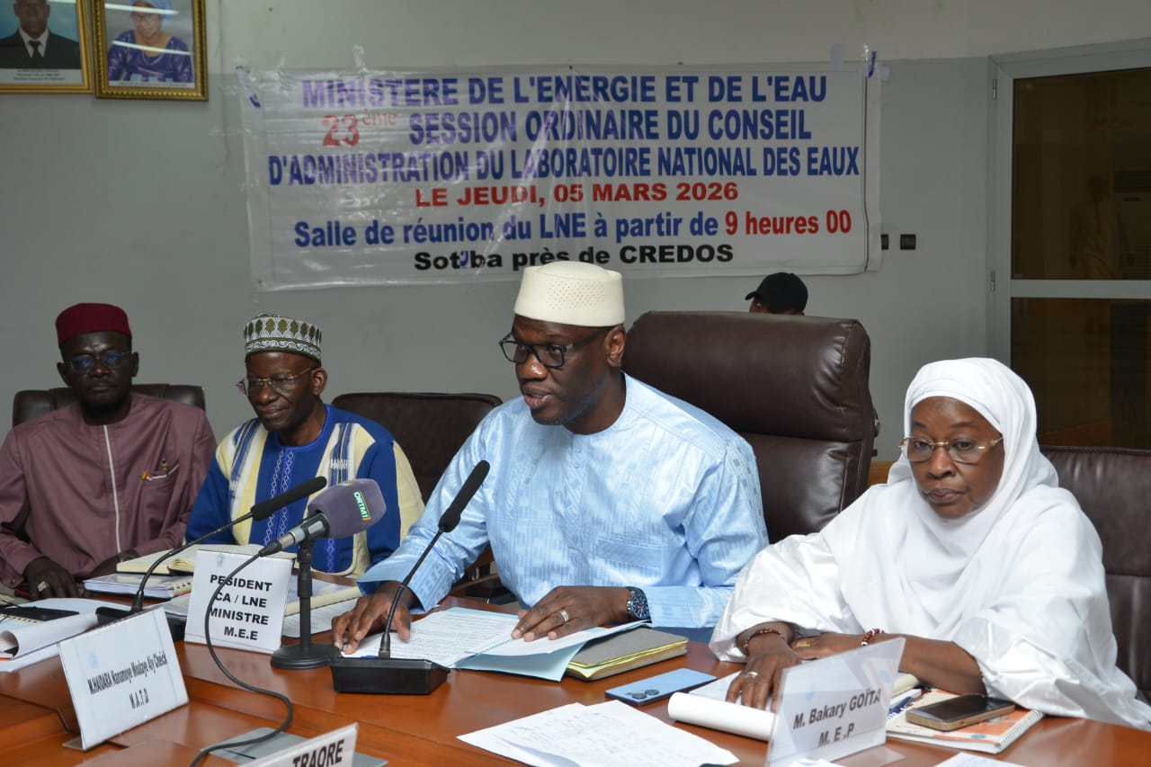 Le Laboratoire National des Eaux (LNE) a tenu, ce jeudi 05 Mars 2026, la 23ème session ordinaire de son Conseil d’Administration. Les travaux étaient présidés par le Ministre de l’Energie et de l’Eau, Tiémoko TRAORE, en présence des administrateurs.
