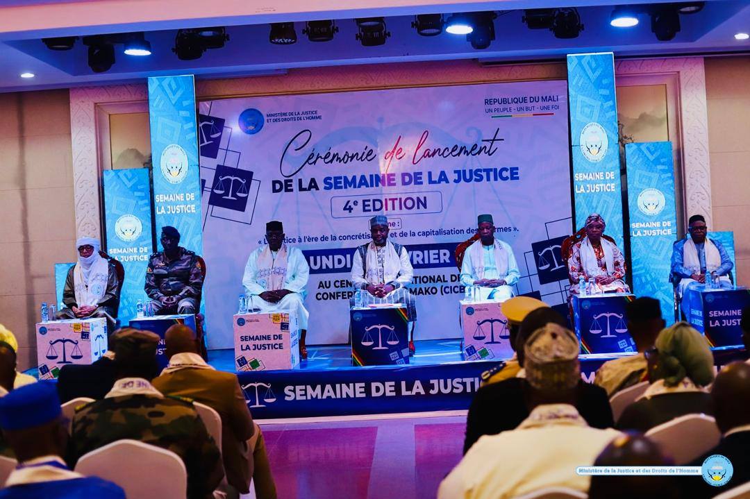 Le Ministre de la Justice et des Droits de l’Homme, Garde des Sceaux, M. Mamoudou KASSOGUÉ, a procédé, lundi 09 février 2026, au Centre International de Conférence de Bamako (CICB), au lancement solennel de la quatrième édition de la Semaine de la Justice. Cet événement majeur a rassemblé plusieurs membres du gouvernement, des partenaires techniques et financiers, ainsi que des acteurs judiciaires et de nombreuses personnalités, témoignant ainsi de l’importance accordée à la justice.