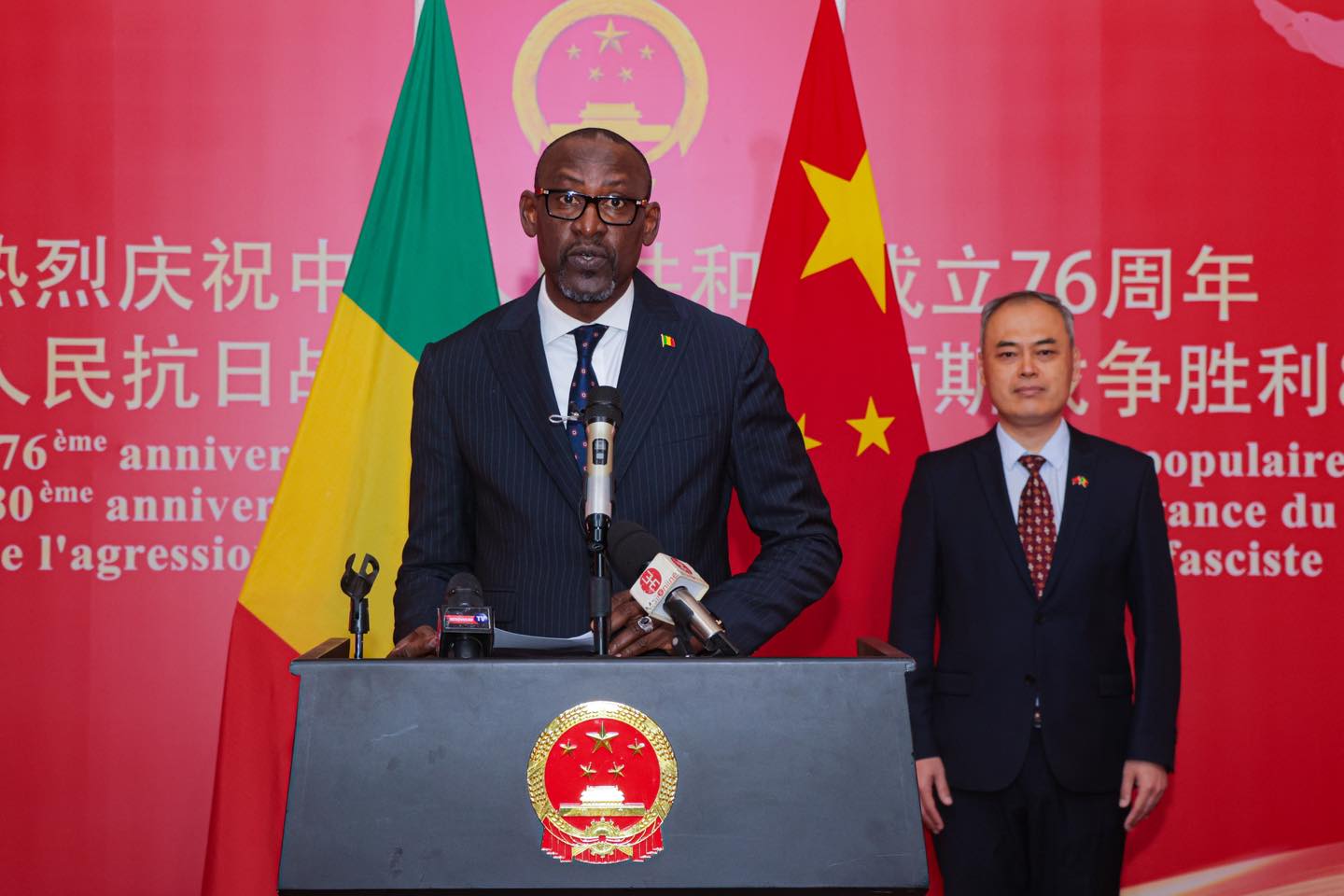 Son Excellence Monsieur Abdoulaye DIOP, Ministre des Affaires étrangères et de la Coopération internationale a pris part, le lundi 15 septembre 2025, à la célébration du 76ème anniversaire de la fondation de la République Populaire de Chine. A cette rencontre festive, le Ministre DIOP a, au nom de Son Excellence Le Général d’Armée Assimi GOITA, Président de la Transition, Chef de l’Etat, transmis ses chaleureuses félicitations et ses vœux de bonheur et de prospérité à Son Excellence Monsieur XI Jinping, au Gouvernement et au Peuple ami chinois.