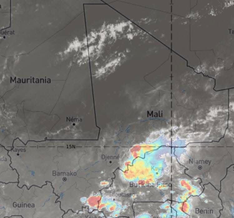 Pluie attendue également, toujours ce samedi en fin d’après-midi et la nuit sur l’ensemble du pays, y compris le District de #Bamako et environs, à l’exception des régions du nord du pays.