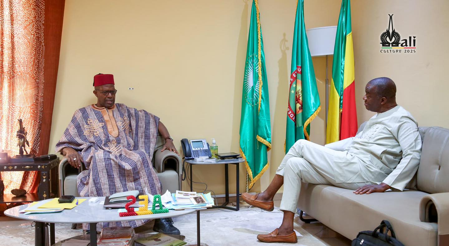Dr. Samuel SIDIBÉ, parrain du mois de novembre de l’Année de la Culture décrétée par Son Excellence le Général d’Armée Assimi GOÏTA, Président de la Transition, Chef de l’État, a été reçu en audience, ce lundi 3 novembre 2025, par le Ministre Mamou DAFFÉ.