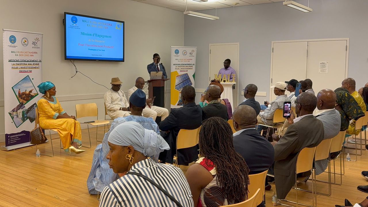 À Washington DC, TOURÉ a rencontré la communauté malienne résidant aux États-Unis, afin de leur présenter les multiples potentialités économiques du Mali et les opportunités d’investissement dans des secteurs stratégiques tels que l’agriculture, les infrastructures, les énergies renouvelables ou encore l’innovation.