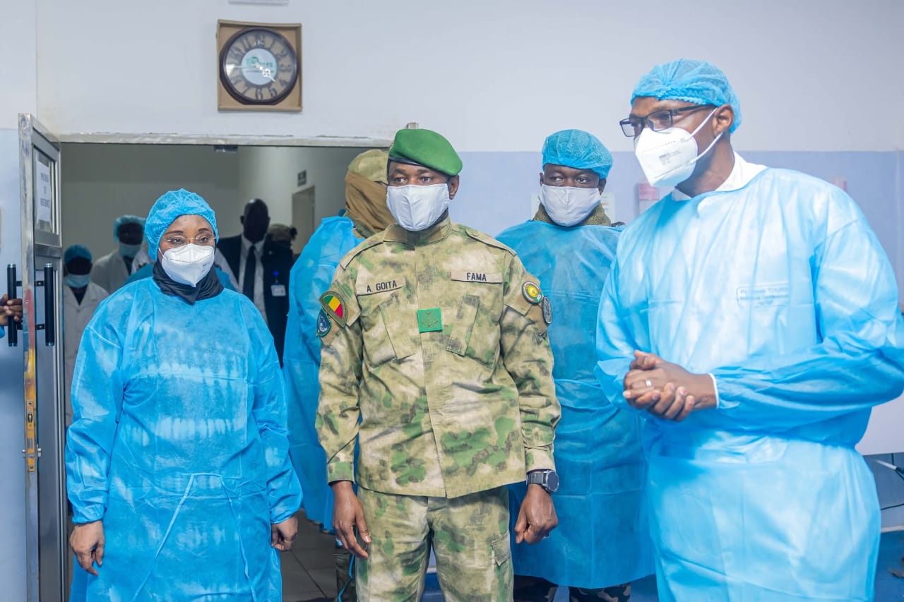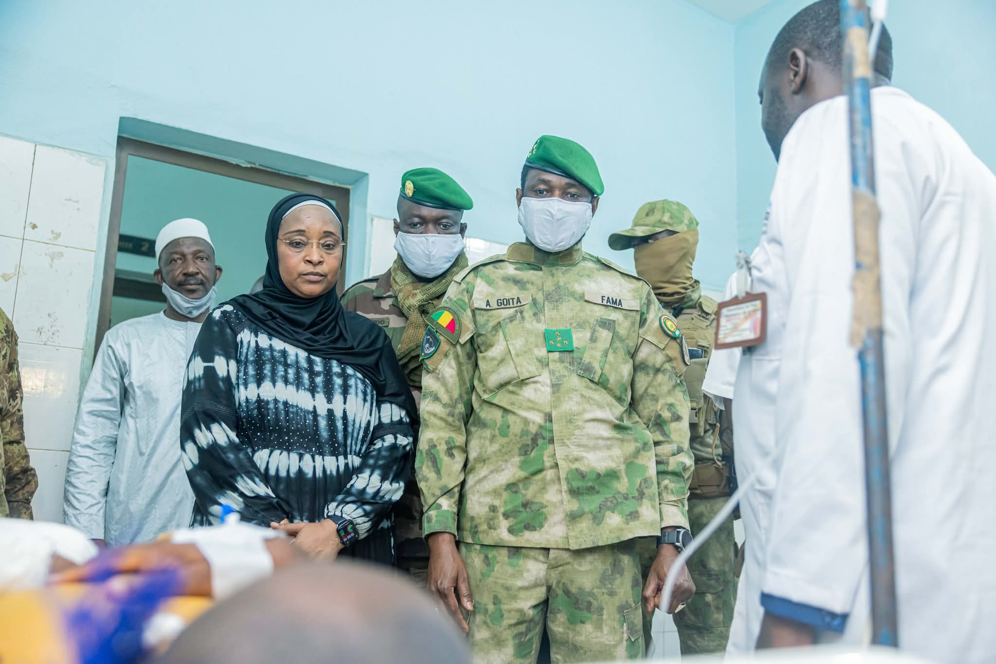 Le Président de la Transition, Son Excellence le Général d’Armée Assimi GOÏTA, Chef de l’État, à la suite des attaques complexes, coordonnées et simultanées survenues à Kati, Bamako, Mopti, Gao et Kidal, a rendu visite aux blessés civils et militaires au CHU Bocar Sidi SALL de Kati. À son arrivée, il a été accueilli par Mme le ministre de la Santé et du Développement social, le Colonel-major Assa Badiallo TOURÉ. Le Chef de l’État a adressé ses encouragements au personnel soignant tout en saluant les efforts consentis. Aux blessés, il a souhaité un prompt rétablissement.