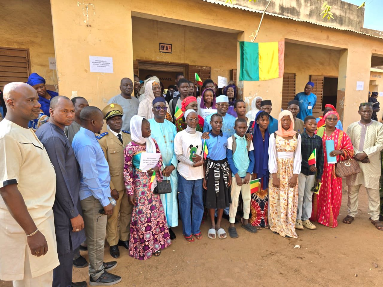 C’est avec beaucoup d’enthousiasme que les élèves du Groupe scolaire de Banankabougou ont accueilli, en liesse, le Ministre de l’Agriculture, M. Daniel Siméon KELEMA et son homologue de l’Industrie et du Commerce, M. Moussa Alassane DIALLO, dans le cadre de la célébration de la 4ème Édition de la Journée Nationale de la Souveraineté Retrouvée.