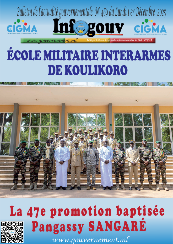 Le Président de la Transition, le Général d’Armée Assimi GOÏTA, Chef de l’État, Chef Suprême des Armées a présidé, ce vendredi 28 novembre 2025, la cérémonie de baptême de la 47e promotion de l’École Militaire Interarmes de Koulikoro (EMIA). Cette cérémonie s’est déroulée en présence du Premier ministre, du Président du Conseil National de Transition, du Ministre de la Défense et des Anciens Combattants, du Gouverneur de région de Koulikoro, du Maire, ainsi que de plusieurs membres du Gouvernement. La cérémonie a, également, enregistré la participation des Chefs d’Etat-Major, des Directeurs des services des Armées, des diplomates accrédités auprès de la République du Mali, ainsi que des partenaires et amis du pays, venus saluer cet engagement renouvelé en faveur de la montée en puissance des Forces Armées et de Sécurité. La 47e promotion de l’EMIA se compose de 343 jeunes officiers provenant du cycle normal et du cycle spécial. Ils ont prêté serment devant le drapeau national, symbole de souveraineté, et devant le Chef Suprême des Armées, s’engageant à servir la patrie avec loyauté, discipline et dévouement, dans le strict respect des valeurs républicaines. Le cycle normal, constitué de 325 officiers dont 34 femmes, regroupe des ressortissants de neuf pays frères. Cela témoigne de la vocation régionale et africaine de l’institution. À cet égard, le Mali compte 311 officiers dont 32 personnels féminins, issus du concours direct, de la voie professionnelle, d’un concours spécifique au profit des Forces spéciales et d’un nouveau dispositif de recrutement de spécialistes. Ce dernier constitue une innovation majeure visant à doter les différentes directions des Armées d’experts dans des domaines spécifiques, en particulier dans le génie militaire, les transmissions et télécommunications, la santé militaire, le matériel et les hydrocarbures, ainsi que la communication institutionnelle. Le major de cette promotion pour le cycle normal est le Sous-lieutenant Idrissa TIAMA, de nationalité malienne, avec la remarquable moyenne de 16,600 sur 20. Cela témoigne de l’excellence du niveau acquis. Quant au cycle spécial, il regroupe 18 officiers, tous nationaux, dont 3 médecins généralistes et 15 médecins spécialistes. Le major du cycle spécial est le Lieutenant Fousseyni TRAORÉ, médecin généraliste, avec une moyenne de 15,19 sur 20. La cérémonie a également été l’occasion de saluer la coopération Sud-Sud, notamment avec l’Ouganda. En effet, 19 officiers de cette promotion ont validé un module de formation en Ouganda, à l’instar de 18 de leurs aînés de la promotion précédente. Au cours de leur formation, les jeunes officiers ont bénéficié d’un enseignement complet et rigoureux, combinant instruction tactique, entraînement physique et formation militaire générale. Ils ont, également, suivi des modules spécialisés, notamment l’aguerrissement commando, destiné à développer la résistance physique et mentale, ainsi qu’à renforcer la maîtrise du combat en milieu désertique, urbain ou forestier. Le tir de combat, centré sur la précision et la réactivité opérationnelle, ainsi que les opérations de maintien de la paix, ont également constitué des volets majeurs de leur formation, afin de leur permettre d’évoluer aussi bien dans des contextes nationaux qu’internationaux. Dans son intervention devant la presse, le Chef Suprême des Armées a rappelé que le choix du parrain de la promotion constitue « un acte de reconnaissance et de mérite ». En attribuant à la 47e promotion le nom du Feu Général de Brigade Pangassy SANGARÉ, les autorités rendent hommage à un serviteur émérite de l’État, dont le parcours exemplaire demeure une source d’inspiration pour les Forces Armées maliennes. Le Président de la Transition a invité les nouveaux officiers à incarner les valeurs portées par cet illustre militaire, notamment la loyauté, le dévouement et la capacité au sacrifice suprême pour la défense de la nation. Le Chef de l’État a, par ailleurs, salué la mémoire des soldats et civils tombés sur le champ de l’honneur et a félicité les nouveaux officiers pour avoir achevé leur formation initiale, essentielle à l’exercice du commandement dans un contexte sécuritaire exigeant. Il a rappelé que, dans les opérations en cours, dominées par des actions offensives aériennes et terrestres contre les groupes armés terroristes, le leadership, la discipline, la compétence et la cohésion demeurent les clés de la victoire. Aux jeunes officiers, il a prodigué des conseils visant à guider leur parcours professionnel et à renforcer leur sens du devoir, les invitant à se montrer dignes des responsabilités qu’ils s’apprêtent à assumer sur le terrain. Le Chef d’État-major Général des Armées, le Général de Division Oumar DIARRA, a également adressé un message fort aux nouveaux promus. Il a exprimé ses félicitations et rappelé que le port de l’uniforme engage l’officier à défendre les valeurs fondamentales de la République. Il a insisté sur la rigueur, la droiture, le sens du devoir, mais aussi sur le rôle central du leadership dans la conduite des hommes. Il a rappelé aux jeunes officiers l’importance du respect du droit international humanitaire, du discernement opérationnel et de la responsabilité morale du chef de section, premier garant de la cohésion et de l’efficacité de ses troupes. Le Général DIARRA a exhorté les cadets à se préparer à rejoindre les Groupements Tactiques Interarmes et les Bataillons d’Intervention Rapide, où ils seront au contact direct des réalités opérationnelles et des populations. Il leur a demandé de devenir des leaders de terrain, capables d’assurer la fluidité des ordres, de maintenir la cohésion des unités et de susciter l’adhésion de leurs subordonnés