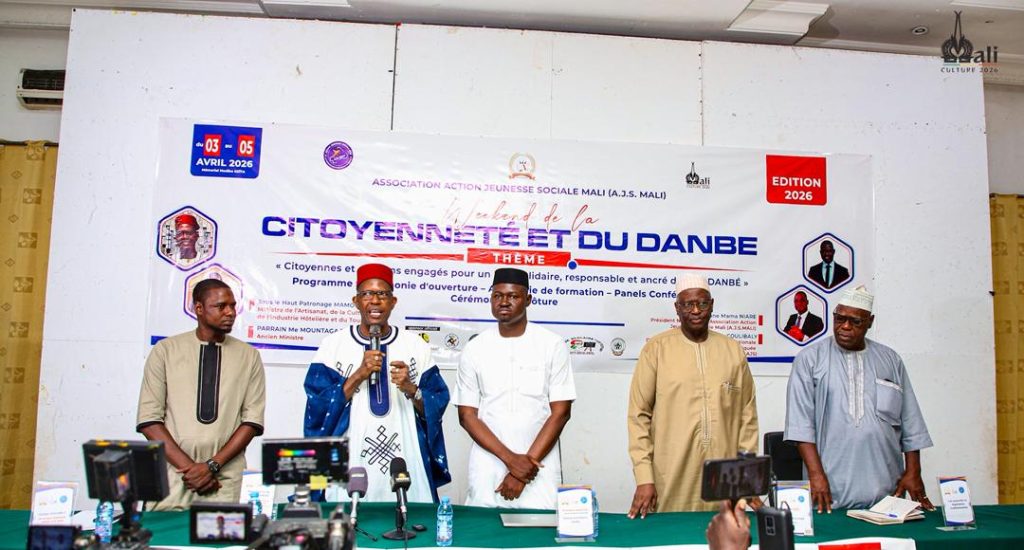 Les locaux du ‘’Mémorial Modibo Keïta de Bamako’’ ont accueilli, ce vendredi 3 avril 2026, la cérémonie d’ouverture du Week-end de la Citoyenneté et du ‘’Danbé’’. L’événement s’est déroulé sous la présidence du Ministre de l’Artisanat, de la Culture, de l’Industrie hôtelière et du Tourisme, Mamou DAFFÉ, en présence du parrain, Me Mountaga TALL et de l’initiateur, Mahamane NIARÉ. Organisé par l’Association Action Jeunesse Sociale – Mali (A.J.S-MALI), ce rendez-vous citoyen et culturel met en avant les valeurs de solidarité et de responsabilité. L’édition 2026, prévue du 3 au 5 avril 2026, est placée sous le thème : « Citoyennes et citoyens engagés pour un Mali solidaire, responsable et ancré dans le Danbé », une orientation qui souligne l’importance des repères identitaires et de l’engagement collectif. L’objectif de l’événement est de créer un espace de formation et de sensibilisation, où la jeunesse est appelée à s’approprier les valeurs de patriotisme, d’intégrité et de respect du bien commun. L’initiative s’inscrit pleinement dans la dynamique de l’Année de l’Éducation et de la Culture 2027, décrétée par Son Excellence le Général d’Armée Assimi GOÏTA, Président de la Transition, Chef de l’État. Le Ministre Mamou DAFFÉ a rappelé que la jeunesse est au cœur de la construction du nouveau Mali. Il a souligné que ce rôle ne pourra être pleinement assumé qu’à travers l’appropriation des valeurs culturelles maliennes, notamment le ‘’Danbé’’ et le ‘’Maaya’’, symboles de dignité, de solidarité et de respect mutuel. Ces repères, piliers de la société, constituent, selon lui, un facteur essentiel pour refonder un Mali uni et durable. Le Ministre a félicité et encouragé les initiateurs du projet, qui contribuent à l’éducation de la jeunesse à nos valeurs culturelles endogènes. MACIHT