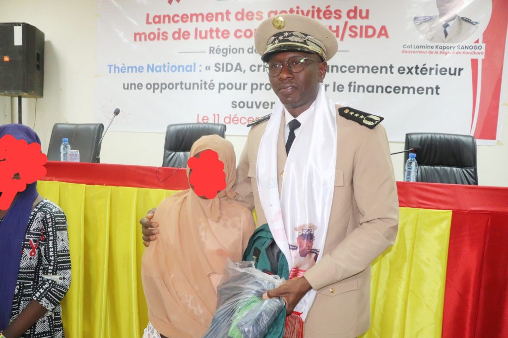 La cérémonie marquant le lancement des activités du mois de lutte contre le SIDA s’est tenue, ce jeudi 11 décembre 2025, dans la salle de conférence de la Chambre de Commerce et d’Industrie de Koulikoro (CCIM), sous la présidence du Gouverneur de la Région, le Colonel El Hadj Lamine Kapory SANOGO. Ce rendez-vous annuel a réuni acteurs institutionnels et membres des organisations de la société civile autour du thème national : « SIDA, crise de financement extérieur une opportunité pour promouvoir le financement souverain ». Dans son allocution, le Gouverneur a souligné l’importance de cette problématique et l’urgence d’adapter les mécanismes de financement face à la baisse des fonds étrangers. Il a appelé à renforcer l’implication locale pour garantir la pérennité des actions de prévention et d’accompagnement des personnes vivant avec le VIH/SIDA. Un moment fort de la cérémonie a été la remise symbolique de 200 kits scolaires aux enfants infectés ou affectés par le VIH/SIDA. Ce geste, réalisé par le Gouverneur en sa qualité de Président du Comité Régional de Lutte contre le SIDA, vise à soutenir la scolarisation et le bien-être de ces enfants vulnérables. L’Association Malienne des Personnes Vivant avec le VIH/SIDA (AMP+), présente à l’événement, a chaleureusement remercié le Gouverneur pour son engagement constant en faveur de leur cause. Ce soutien renforce l’espoir d’une meilleure prise en charge et d’une amélioration significative des conditions de vie des personnes concernées dans la région. La mobilisation se poursuit tout au long du mois avec plusieurs actions de sensibilisation, de dépistage et d’appui aux personnes touchées par le VIH/SIDA. La Région de Koulikoro réaffirme, ainsi sa détermination à mener le combat sans relâche. Gouvernorat de Koulikoro