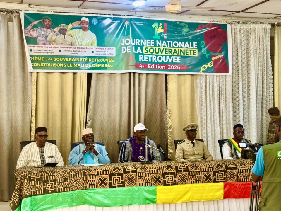 Ce mercredi 14 janvier 2026, le Ministre des Affaires religieuses, du Culte et des Coutumes a présidé la cérémonie de célébration de la Journée nationale de la Souveraineté retrouvée à Koulikoro. À son arrivée, la délégation ministérielle a bénéficié d’un accueil chaleureux de la part du Gouverneur de Région de Koulikoro, le Colonel Elhadj Lamine Kapori SANOGO, entouré de l’ensemble de son staff. La cérémonie a débuté par la montée solennelle des couleurs nationales dans l’enceinte du Gouvernorat. Les activités se sont poursuivies par une conférence animée par deux éminents experts sur la thématique de la souveraineté, dans la grande salle de conférence du Gouvernorat. Prenant la parole, le Ministre Mahamadou KONÉ a adressé ses remerciements aux autorités régionales et aux participants, avant de présenter de manière détaillée les efforts quotidiens déployés par les autorités de la Transition en vue de répondre aux aspirations et aux besoins fondamentaux du peuple malien. Il convient de souligner la présence massive des forces vives de la région de Koulikoro, témoignant, ainsi de leur engagement citoyen, patriotique et constant en faveur de la souveraineté nationale. MARCC