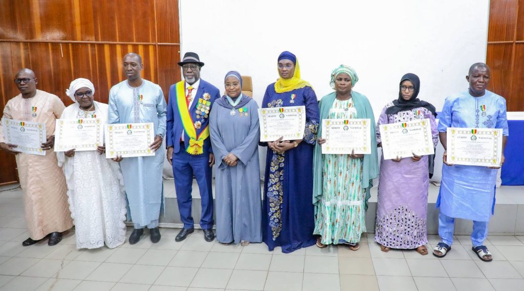 Ils étaient vingt-six (26) cadres du secteur de la Santé et du Développement Social à être reconnus et distingués pour leur engagement et leur contribution au renforcement du système sanitaire et social. Parmi eux, dix (10) ont été faits Chevaliers de l’Ordre National et seize (16) décorés du Mérite National avec Lion Debout. À travers cette initiative, la Ministre de la Santé et du Développement Social, Colonelle-majore, Assa Badiallo TOURE réaffirme sa volonté de promouvoir la culture du mérite et de valoriser les ressources humaines, pilier essentiel de la performance et de la transformation du système de santé et de protection sociale. Ils étaient présents, responsables administratifs, collègues, parents et invités, pour cet événement placé sous le signe de la reconnaissance et du mérite. Une phase protocolaire riche en émotion a marqué le début de la cérémonie de remise des médailles. Sous le regard attentif de l’assistance, la Ministre et le Grand Chancelier des Ordres Nationaux ont procédé à la décoration des récipiendaires. Les distinctions décernées viennent, ainsi, reconnaitre le dévouement constant de ces cadres dans la mise en œuvre des politiques publiques de santé et de développement social, souvent dans des contextes contraignants. Au nom de l’ensemble des récipiendaires du ministère de la Santé et du Développement Social, Camara Fatoumata Mah Thiam KONE a rappelé que recevoir ces médailles représente pour eux, certes, une reconnaissance, mais, aussi, et surtout, une responsabilité : celle de continuer à incarner les valeurs, qui fondent leur engagement au service de la santé et du développement social. Et de poursuivre que : « derrière chaque médaille, il y a des nuits sans sommeil, des urgences imprévues, des kilomètres parcourus pour atteindre un être, qui souffre et qui nous attend, des décisions difficiles prises dans l’intérêt général. Heureusement, derrière chaque médaille, il y a aussi des moments de joie : un enfant sauvé, une mère rassurée, une personne fragile, qui retrouve espoir, un toit reconstruit, une famille réunie. En somme, des attentes comblées ». Très émue, la Ministre Assa Badiallo TOURE a mis un accent particulier sur l’excellence et la responsabilité. Elle a félicité les récipiendaires pour leurs parcours exemplaires et rappelé que ces distinctions traduisent la reconnaissance de la Nation envers des agents, qui se sont illustrés par leur dévouement, leur intégrité et leur sens élevé du devoir. Médecin Colonelle-majore a, par ailleurs, exhorté l’ensemble des cadres et agents du département à faire de l’excellence, de la rigueur et du patriotisme, des principes directeurs de leur action quotidienne. MSDS