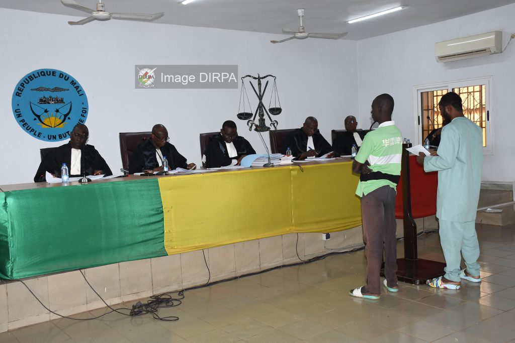 Dans la salle solennelle du Tribunal militaire de Bamako, l’audience correctionnelle ordinaire s’est tenue, le mardi 18 novembre 2025, sous la présidence du magistrat Assama DOLO, entouré de ses collègues magistrats militaires. Huit dossiers étaient inscrits au rôle, impliquant seize prévenus, civils et militaires confondus. Les infractions jugées reflètent les tensions et les exigences du monde militaire : un cas de vol assorti d’une violation de consigne générale, plusieurs cas de désertion, certains aggravés par la perte d’armes de guerre et des manquements répétés aux règles disciplinaires. Ces affaires, bien que diverses, ont un point commun : elles mettent en lumière les défis de la discipline dans un contexte sécuritaire tendu. Ces procédures témoignent de l’engagement des autorités militaires à maintenir l’ordre et la discipline, essentiels pour la stabilité et la sécurité nationale. La justice militaire reste un pilier pour garantir le respect des lois et la régulation au sein des forces armées, face aux enjeux sécuritaires du pays. DIRPA