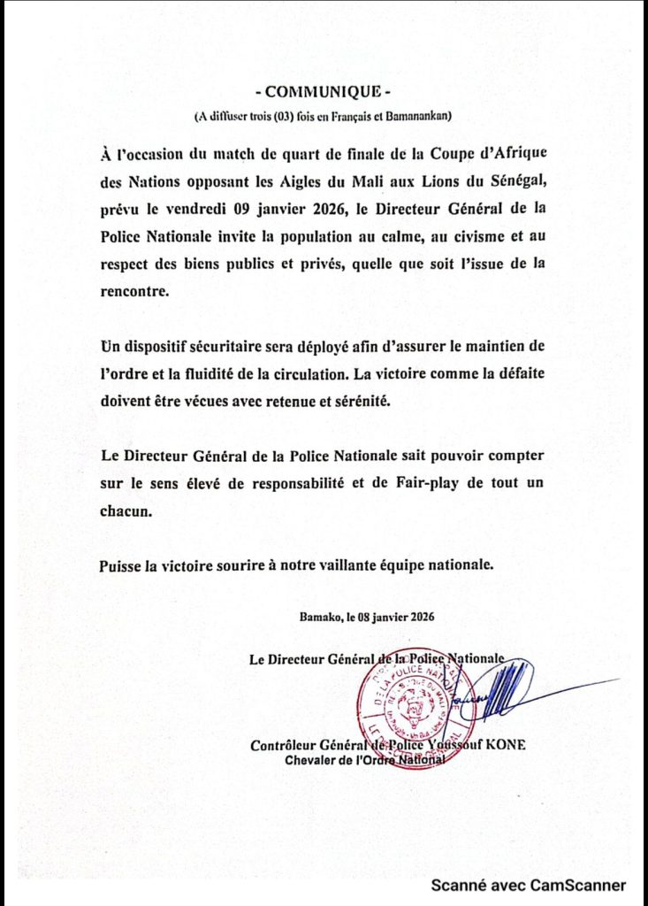 CAN MAROC-2025 | Communiqué : Le Directeur Général de la police appelle à la retenue, quelle que soit l’issue du match