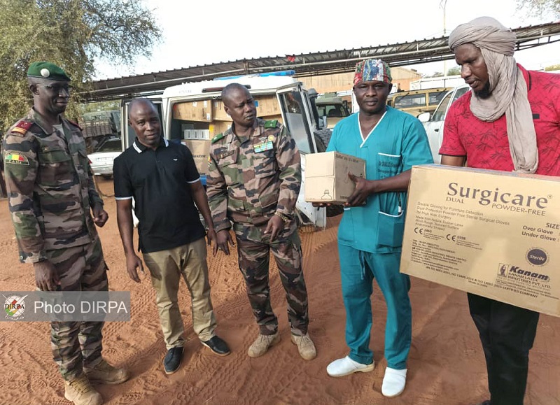 Dans le cadre de soutien aux forces de défense et de sécurité, la direction régionale de services de santé des armées a reçu, ce lundi 1er décembre 2025, un important lot de médicaments par la direction régionale de l’hôpital de Gao. La remise a été faite au commandant du poste de commandement interarmées du théâtre Est de l’opération Dougoukoloko, le Général de Brigade Mamadou Massaoulé SAMAKÉ. Cette donation de kits sanitaires doit permettre d’accroître les capacités d’intervention du plateau technique du rôle 2, qui intervient dans la prise en charge des urgences, des militaires blessés de guerre ou malades sur les théâtres des opérations Le médecin commandant, Souleymane DIALLO, Directeur zonale des services de santé des armées de Gao, a salué et remercié la direction de l’hôpital pour son geste humanitaire et social car, c’est toutes les forces de défense et de sécurité du théâtre-Est qui en bénéficieront. Cette donation de kits sanitaires doit permettre d’accroître les capacités d’intervention du plateau technique du rôle 2, qui intervient dans la prise en charge des urgences, des militaires blessés de guerre ou malades sur les théâtres des opérations Le médecin commandant, Souleymane DIALLO, Directeur zonal des services de santé des armées de Gao, a salué et remercié la direction de l’hôpital pour son geste humanitaire et social car, c’est toutes les forces de défense et de sécurité du théâtre-Est qui en bénéficieront. DIRPA