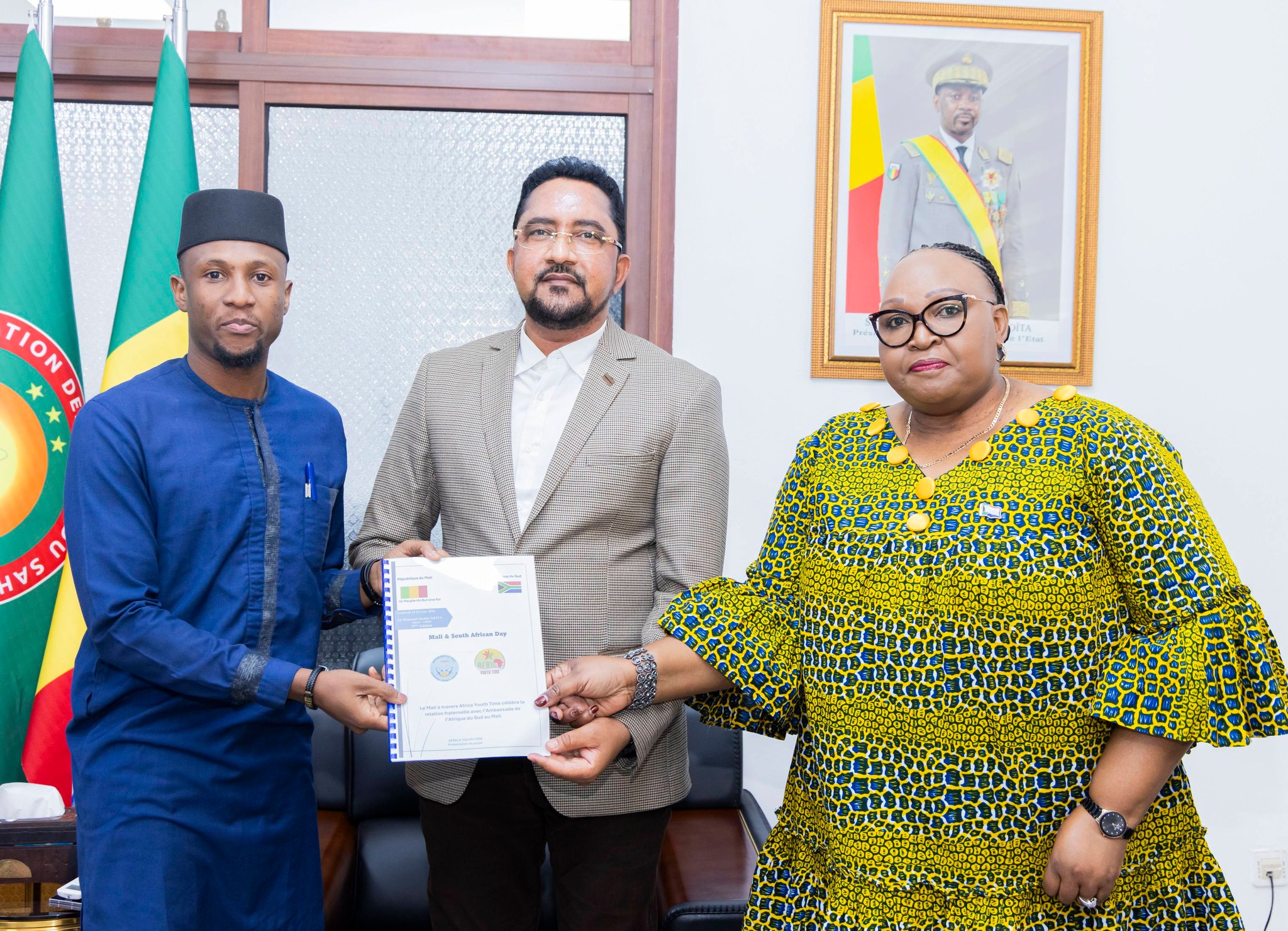 Le Ministre des Maliens Établis à l’Extérieur et de l’Intégration africaine M. Mossa AG ATTAHER a accordé une audience ce mercredi 11 février 2026, à l’organisation Africa Youth Time en présence de la chargée d’affaires de la République d’Afrique du Sud au Mali, qui appuie l’initiative qu’elle souhaite mettre en œuvre.