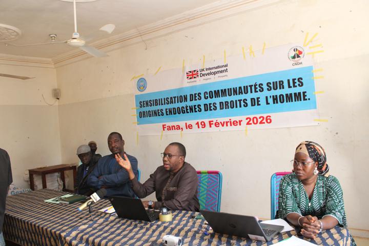 La Commission nationale des droits de l’Homme (CNDH) a organisé, à Fana, le jeudi 19 février 2026, une session de sensibilisation de la population sur les origines endogènes des droits de l’Homme au Mali.