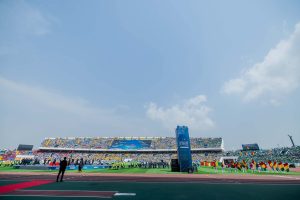 A son arrivée au stade, juste après les honneurs militaires, le Président de la République de Guinée a échangé une poignée de main avec son homologue malien avant de s’installer dans la loge présidentielle, pour le début des travaux.