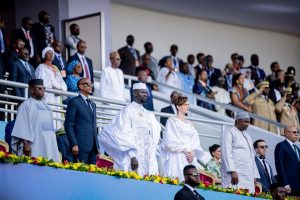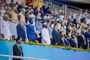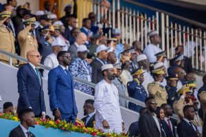 Cette cérémonie, qui marque l’entrée en fonction du premier Président de la Cinquième République de Guinée, a rassemblé de nombreuses personnalités africaines de haut niveau. Plusieurs Chefs d’État ont honoré de leur présence cet événement, notamment ceux du Mali, du Gabon, du Sénégal, de la Mauritanie, de la Gambie, du Liberia, de la Sierra Leone et du Rwanda. D’autres pays africains, comme le Burkina Faso, étaient représentés par des délégations officielles.