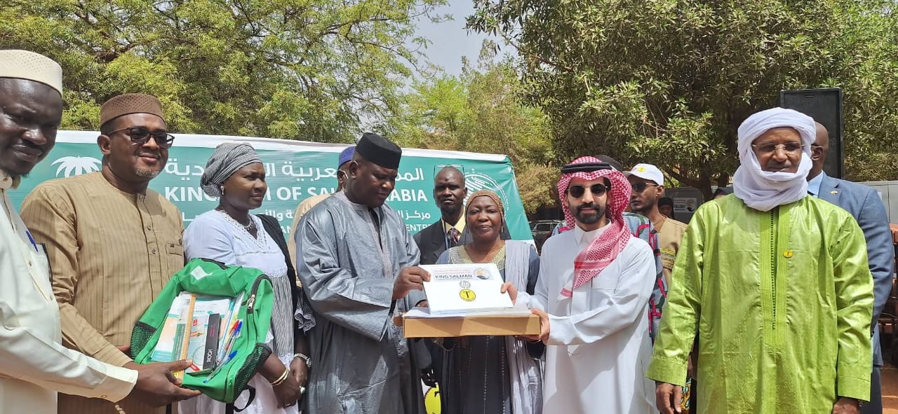 La cérémonie s’est déroulée au Groupe scolaire de Niamakoro B de l’Académie d’Enseignement de Bamako Rive droite, en commune VI du District de Bamako. Le DNEF a au nom du Dr Amadou SY SAVANE, ministre de l’Education nationale salué cette initiative, il a remercié les responsables du Centre Roi Salman au nom du Gouvernement de la Transition à travers le Département de l’Education nationale pour cet appui bénéfique aux écoles d’intervention du projet, il dira que cet appui en matériels pédagogiques renforcera les efforts consentis par l’Etat en matière de l’amélioration de la qualité de l’éducation. La cérémonie s’est déroulée en présence du Chargé d’affaires de l’Ambassade du Royaume d’Arabie Saoudite au Mali, Monsieur Muteb Khazeem Alkhazeem, du Directeur de l’ONG Tassaght, Monsieur Abdoul Aziz Ag Alwaly, du représentant de la Délégation spéciale de la Commune VI du District de Bamako, du Chef de quartier de Niamakoro, des deux Directrices d’Académies d’Enseignement de Bamako, de l’ensemble des Directeurs des Centres d’Animation pédagogique de Bamako Rive droite et gauche et plusieurs invités. La remise symbolique, des tables bancs, des kits scolaires et matériels informatiques ont été entre autres les temps forts de cette cérémonie.