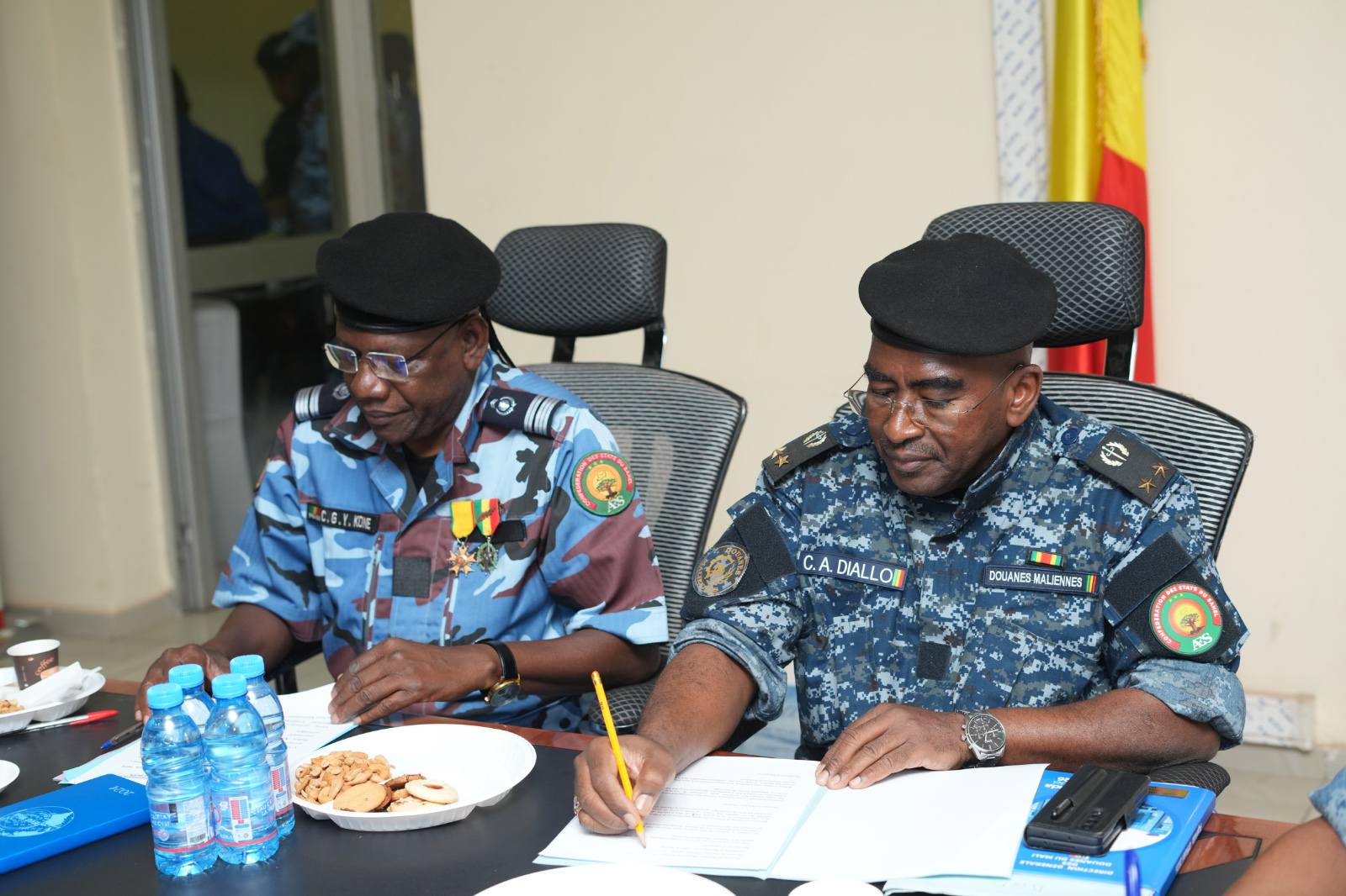 Dans le cadre du renforcement de la coopération inter services, le Directeur Général de la Police Nationale, Contrôleur Général de Police Youssouf KONÉ a reçu, ce mardi 14 avril 2026, son homologue des Douanes, l’Inspecteur Général Cheickna Amala DIALLO, pour une visite de courtoisie placée sous le signe de la fraternité et de la collaboration. La délégation a été accueillie en présence de l’Adjoint au Directeur Général, le Contrôleur Général de Police Seydou DIARRA, ainsi que de plusieurs Responsables et Chefs de Service de la Police Nationale. Cette rencontre s’inscrivait dans une dynamique de consolidation des relations fraternelles entre les deux Institutions.