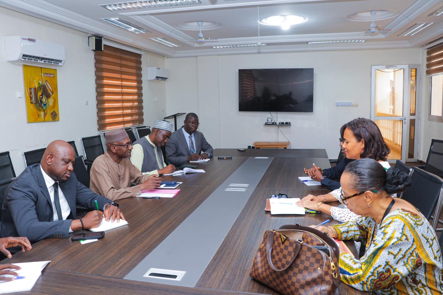 L’Ambassadeur Moustapha TRAORE, Secrétaire Général du Ministère des Affaires étrangères et de la Coopération internationale, a reçu la visite de courtoisie, ce mercredi 22 avril 2026, d’une délégation du Fonds Mondial, conduite par Madame Saran Fadiga BRANCHI, Gestionnaire du portefeuille du Mali, en visite de travail dans notre pays.