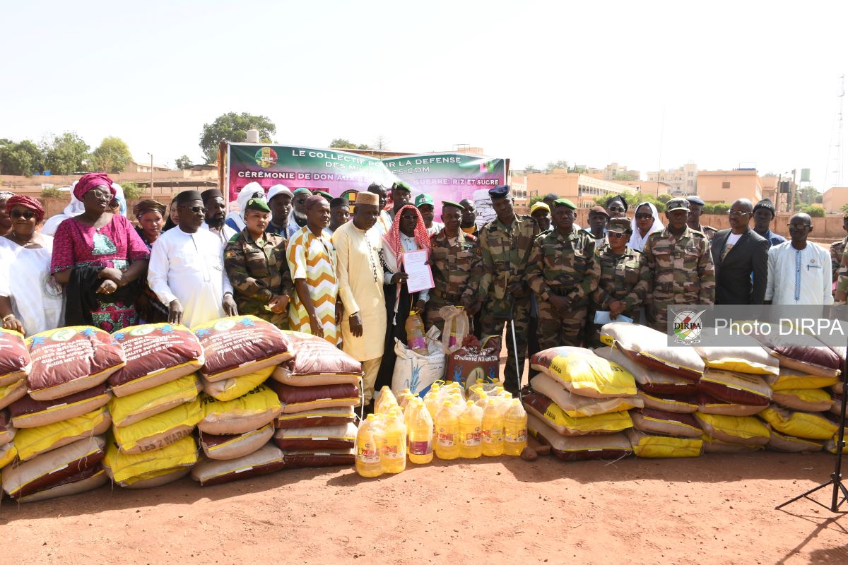 Fidèles à leur mission de défendre l’Armée et les plus hautes autorités de la Transition, les membres du Collectif pour la Défense des Militaires (CDM) font encore parler d’eux. Ils ont remis, le mercredi 25 février 2026, au Centre de Regroupement d’Instruction Physique (CRIP) de Kati, des vivres composés de 04 tonnes de riz, 04 tonnes de sucres et 80 bidons d’huile aux blessés de guerre. Autorités communales et traditionnelles, elles étaient nombreuses à prendre part à la cérémonie de remise.