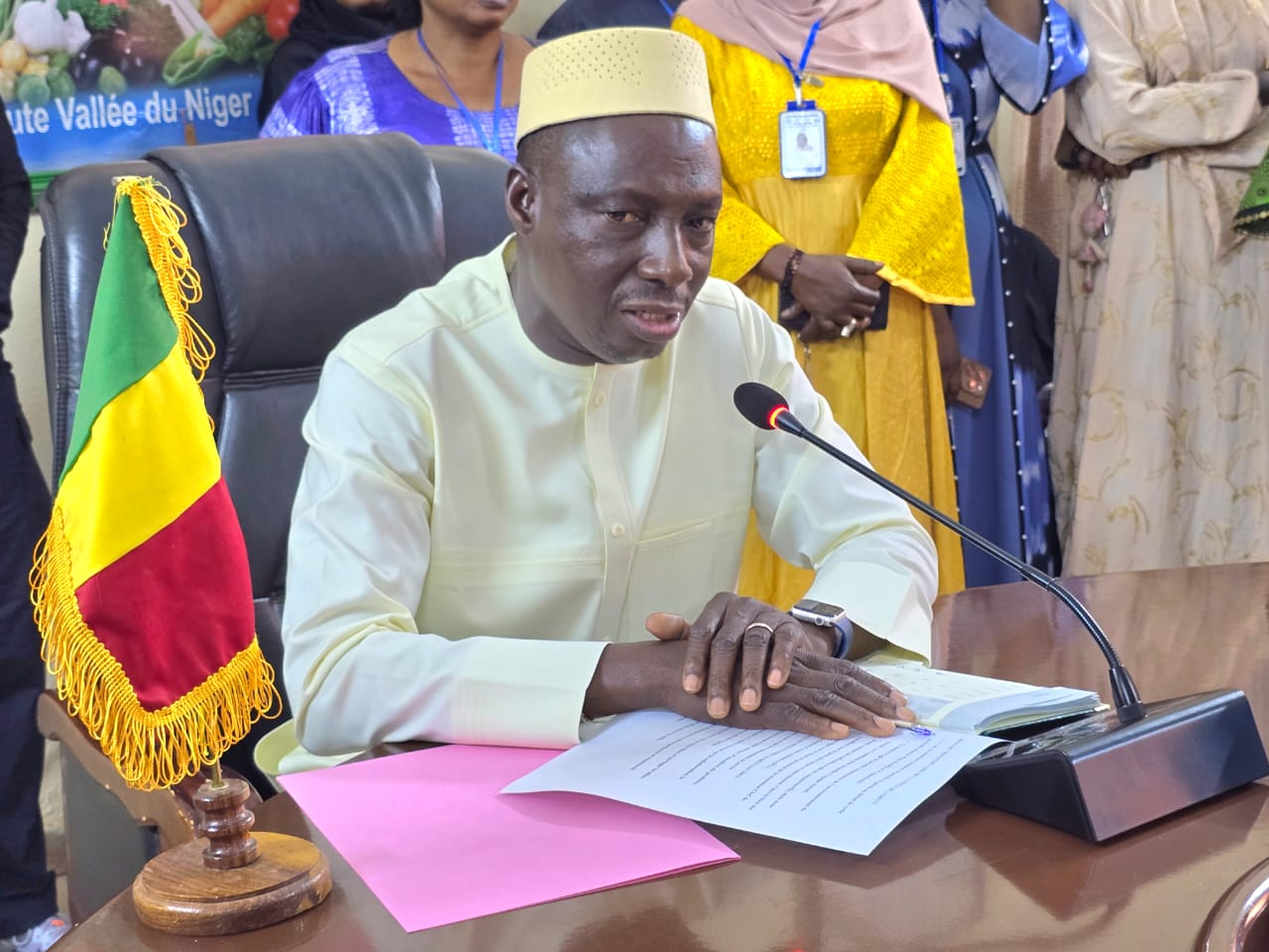 Trois semaines après sa prise de fonctions à la tête du Département de l’Agriculture, le Ministre Dr. Ibrahima SAMAKE, a effectué sa première visite de prise de contact des structures relevant du Ministère de l’Agriculture, à l’Office de la Haute Vallée du Niger, sis à Badalabougou dans l’Arrondissement V du District de Bamako, ce Jeudi 5 mars 2026, dans la matinée.