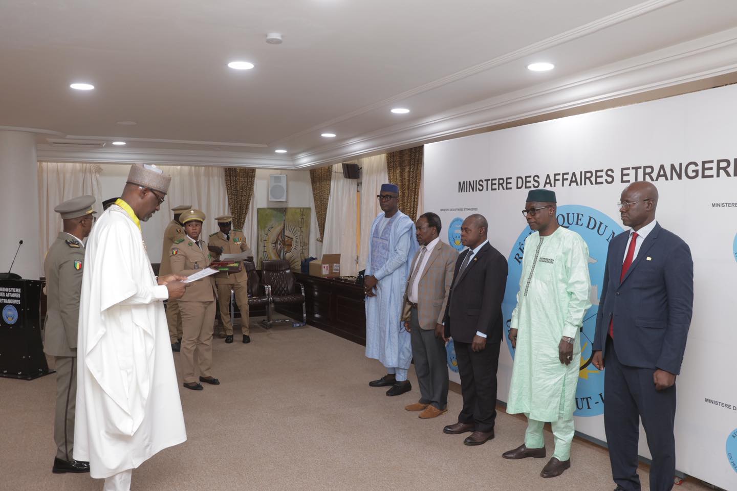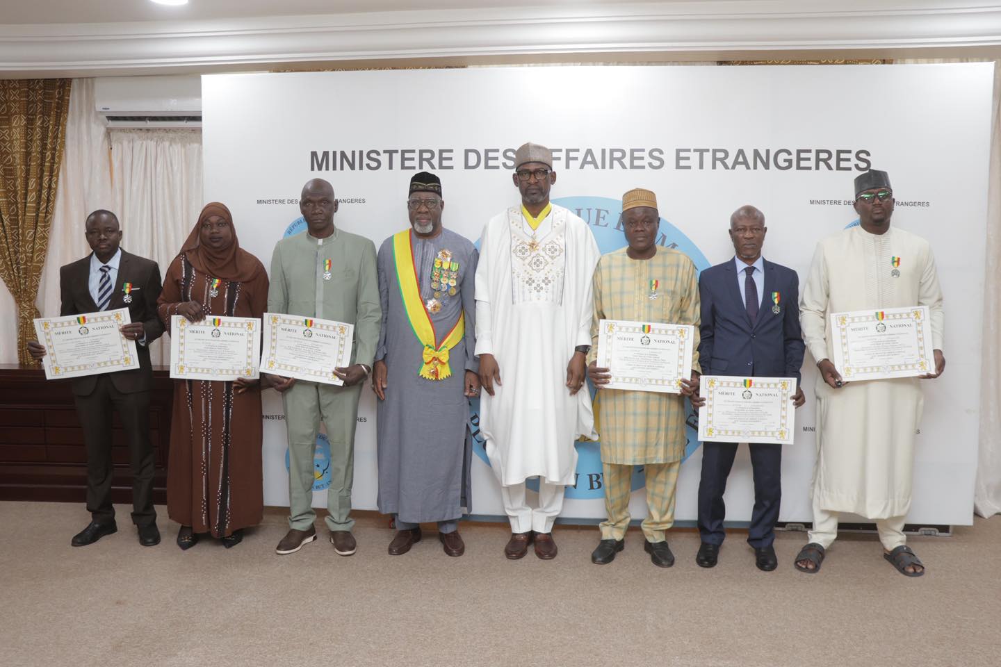 Son Excellence, Abdoulaye DIOP, Ministre des Affaires étrangères et de la Coopération internationale a, au nom de Son Excellence Le Général d’Armée Assimi GOÏTA, Président de la Transition, Chef de l’État, décerné, ce mardi 17 février 2026, aux récipiendaires de son Ministère, les distinctions honorifiques de Chevalier de l’Ordre national et du mérite national au titre de l’année 2025.