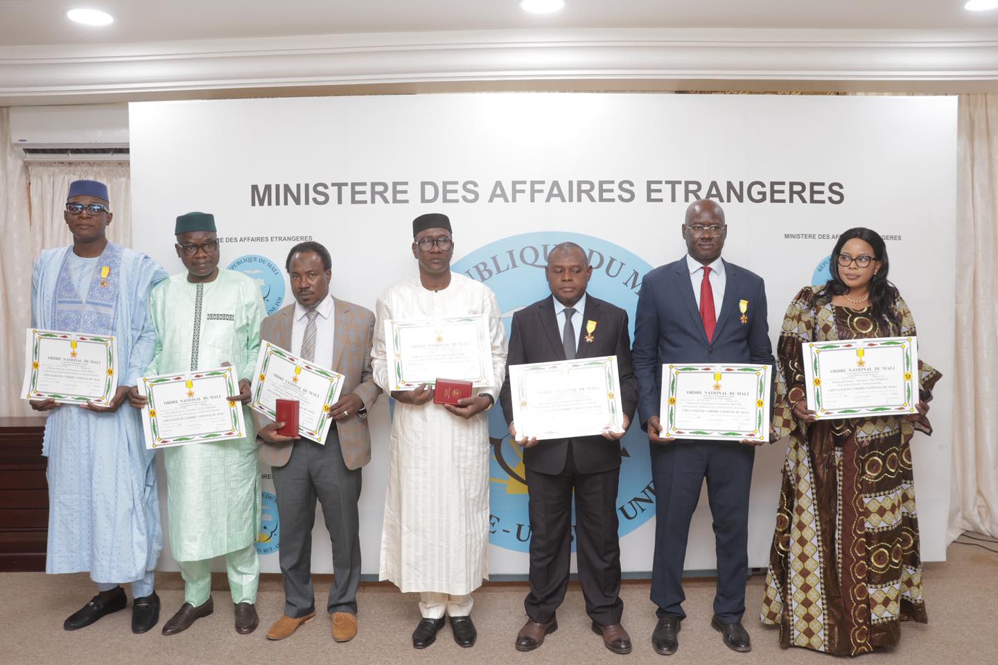 A l’occasion de cette cérémonie solennelle de reconnaissance et de célébration du mérite, les récipiendaires ont traduit leur profonde gratitude envers les plus hautes Autorités, et renouvelé leur engagement à contribuer davantage au travail remarquable, au sein du Ministère, en vue du rayonnement de la diplomatie malienne.