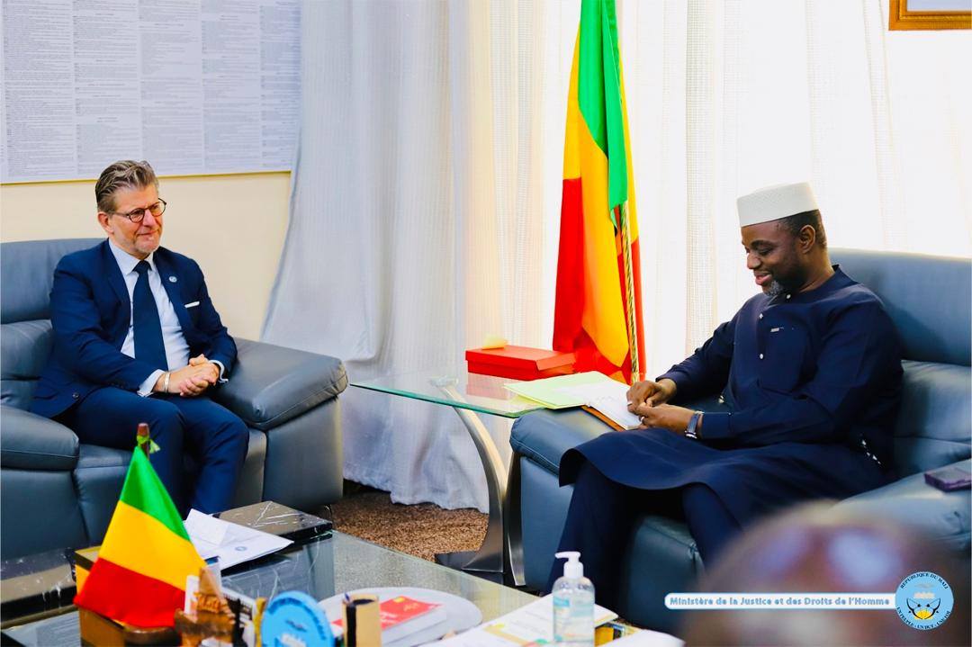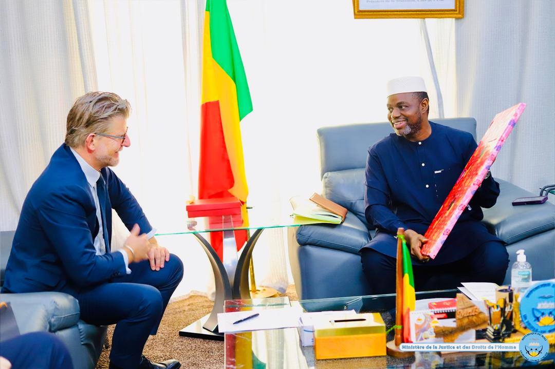 Le Ministre de la Justice et des Droits de l’Homme, Garde des Sceaux, a accordé ce jour une audience solennelle au Chef de mission d’EUCAP Sahel Mali, Monsieur Peter Kolding, venu présenter ses adieux officiels au terme d’un mandat marqué par un engagement constant.