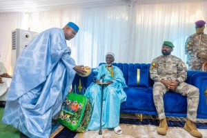 Dans le bon esprit de solidarité à la malienne, le Président Assimi GOÏTA ne s’est pas rendu les mains vides. Il a offert au doyen plusieurs cadeaux dont un panier de colas, un bélier, une couverture, un tapis de prière, un chapelet, ainsi qu’une enveloppe symbolique.