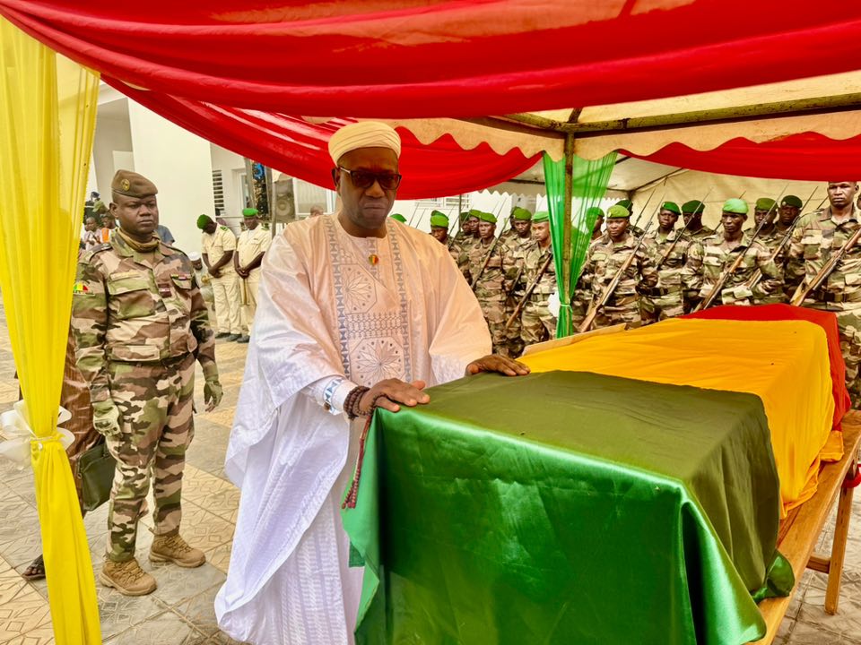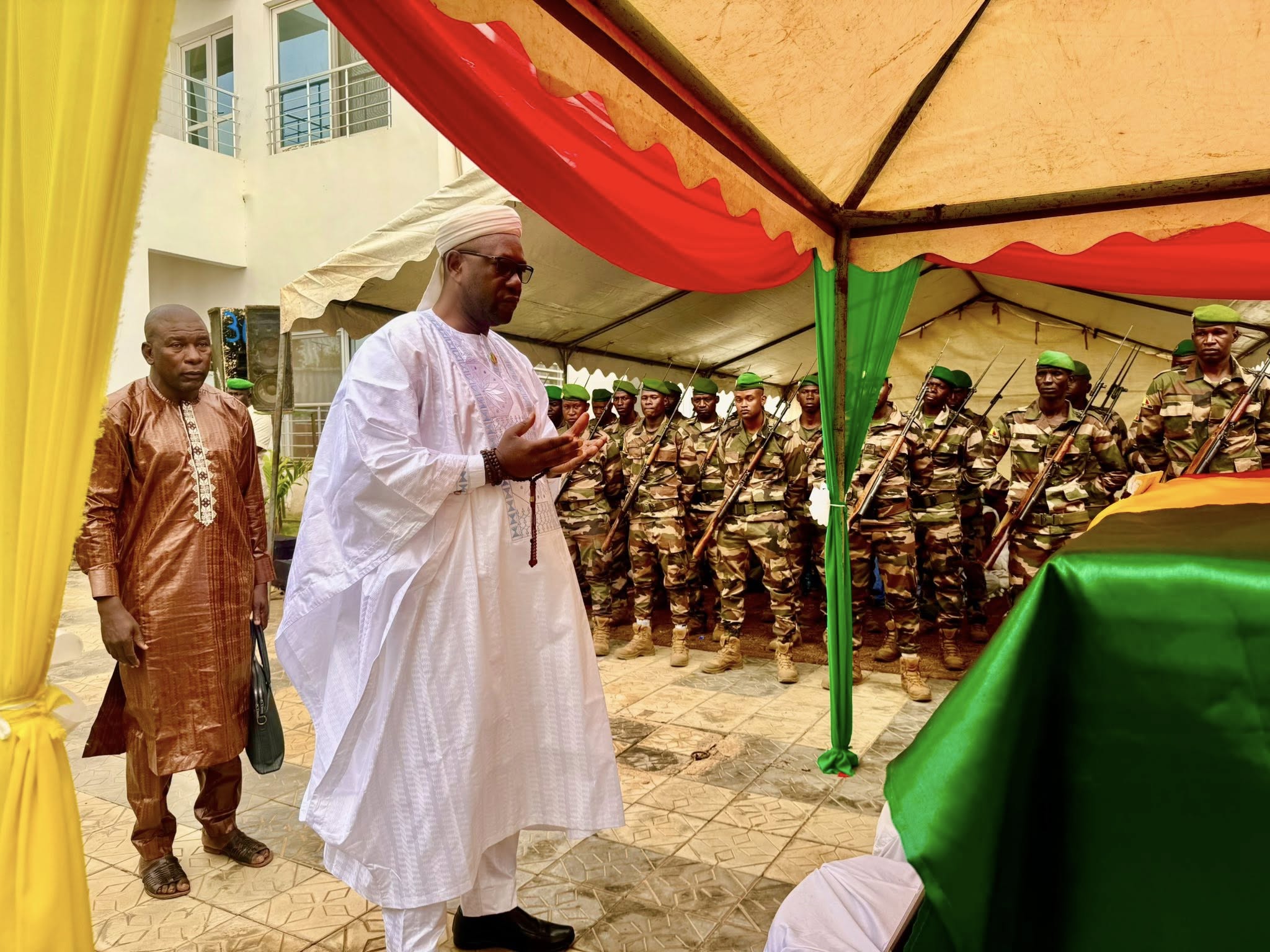 Enfin, la lecture de l’oraison funèbre a été faite par le Gouverneur de Région de Kayes, le GDB Moussa SOUMARÉ retraçant le parcours honorable et exemplaire du défunt. Le Général SOUMARÉ s’est déclaré, profondément, attristé de sa disparition. Il a présenté à la famille Niang, les condoléances les plus émues, au nom du Général d’Armée Assimi GOÏTA, Président de la Transition, Chef de l’État, Grand Maître des Ordres Nationaux, au nom du Gouvernement, au nom de l’ensemble de la région de Kayes et à son nom propre. La sonnerie au mort a mis fin à ce cérémonial officiel.
