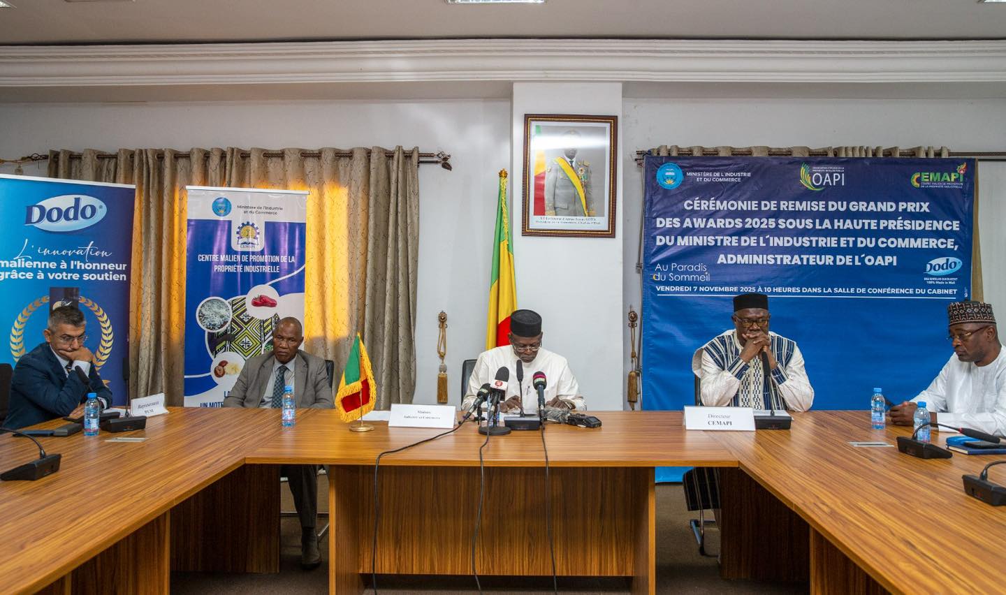 Ce prix, décerné à Libreville lors de l’édition 2025 ayant réuni plus d’une centaine de candidatures à travers l’espace OAPI, vient récompenser l’innovation et la performance industrielle du Mali. Il illustre la volonté des autorités de la Transition de faire de la propriété industrielle un pilier de souveraineté et de développement national.