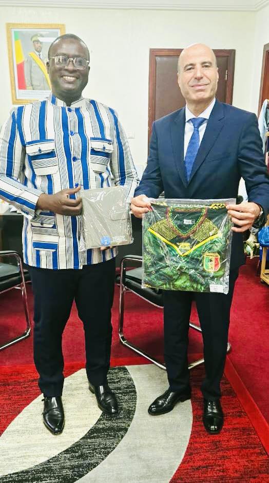 Accompagné de la Directrice des Affaires Publiques, Tabhiret a tenu, dès l’entame des échanges, à saluer le leadership du Ministre. Le Directeur Général a exprimé ses vives félicitations pour les efforts constants déployés en faveur du rayonnement international du Mali par le biais du sport, tout en soulignant l’importance des chantiers liés à l’instruction civique et à la construction citoyenne, piliers essentiels du développement du Mali.