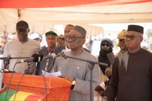 Le Chef du Gouvernement, le Général de Division Abdoulaye Maïga a poursuivi son programme en procédant au lancement officiel des activités du projet de mise en valeur des plaines rizicoles de Tombouctou- PMPRT en donnant le premier coup de pioche.