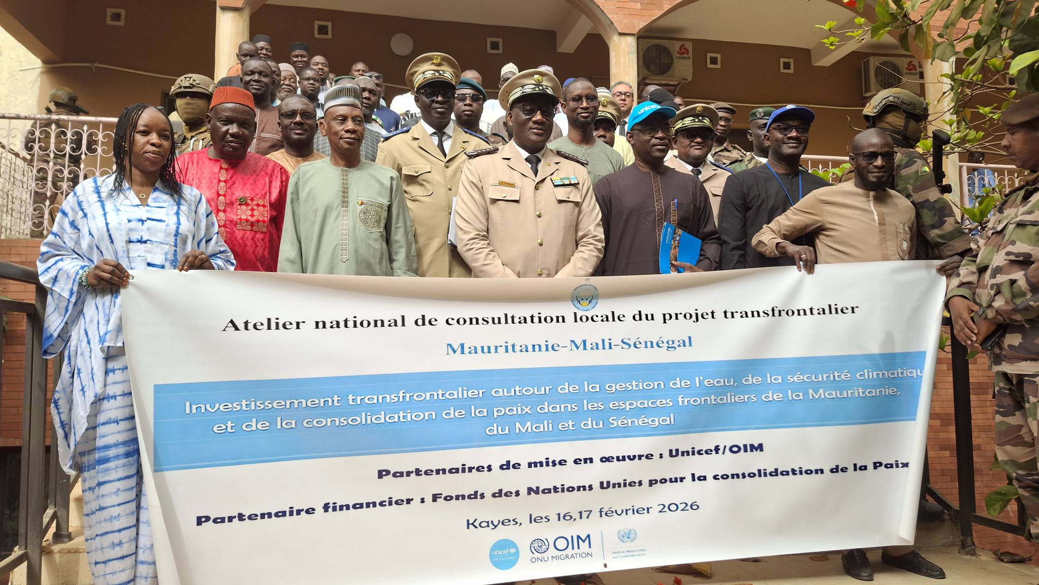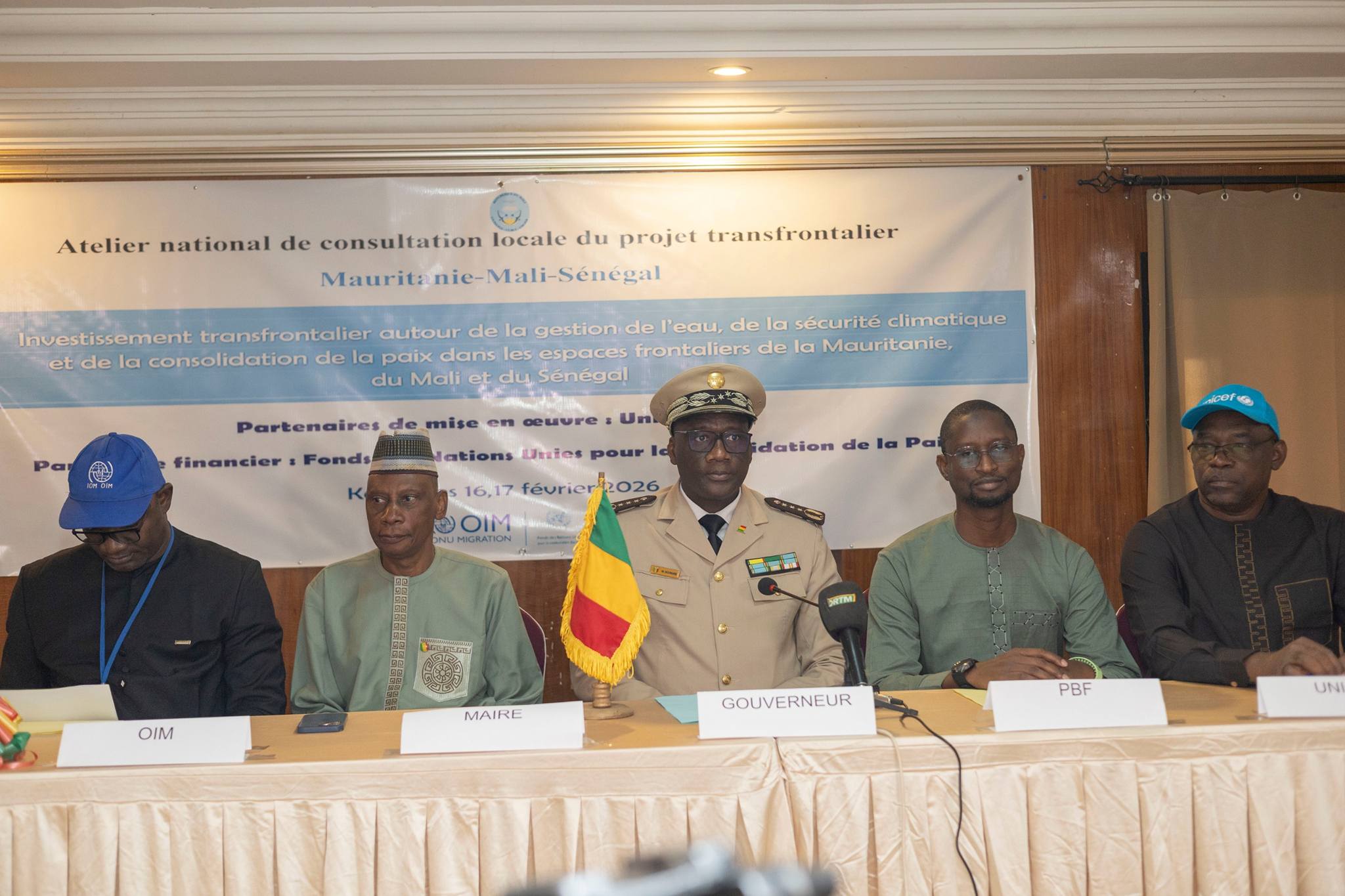 Le Gouverneur de Région de Kayes, le Général de Brigade Moussa SOUMARÉ, accompagné d’une forte délégation a présidé, le lundi 16 Février 2026, à l’hôtel Kamankolé de Kayes, le lancement de l’atelier national de consultation locale du projet transfrontalier Mauritanie-Mali-Sénégal, sous la thématique : « Investissement transfrontalier autour de la gestion durable de l’eau, de la sécurité climatique et de la consolidation de la paix dans les espaces frontaliers de la Mauritanie, du Mali et du Sénégal ». Cette importante rencontre regroupe les acteurs des trois pays.